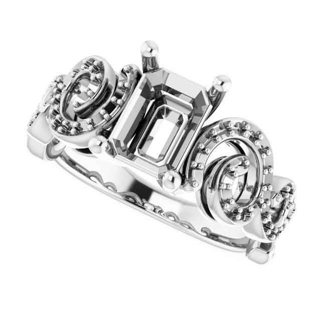Platinum 8x6 mm Emerald Cut Engagement Ring 122111. Center stone sold separately. Matching Band 122171 sold separately.