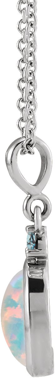 Platinum 8x6 mm Lab-Grown White Opal & Natural London Blue Topaz 16-18" Necklace