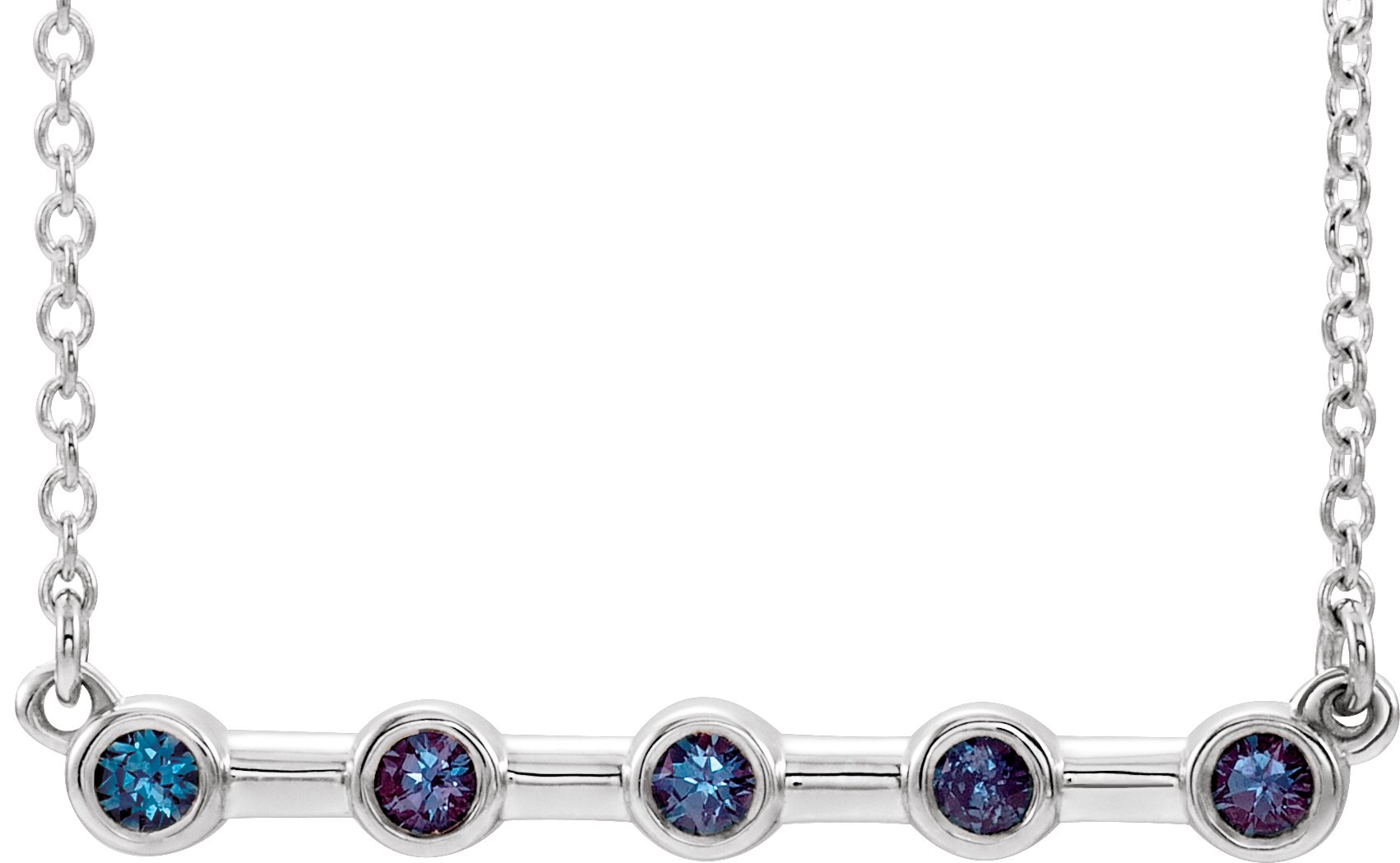 Platinum Alexandrite Bezel Set Bar 18 inch Necklace