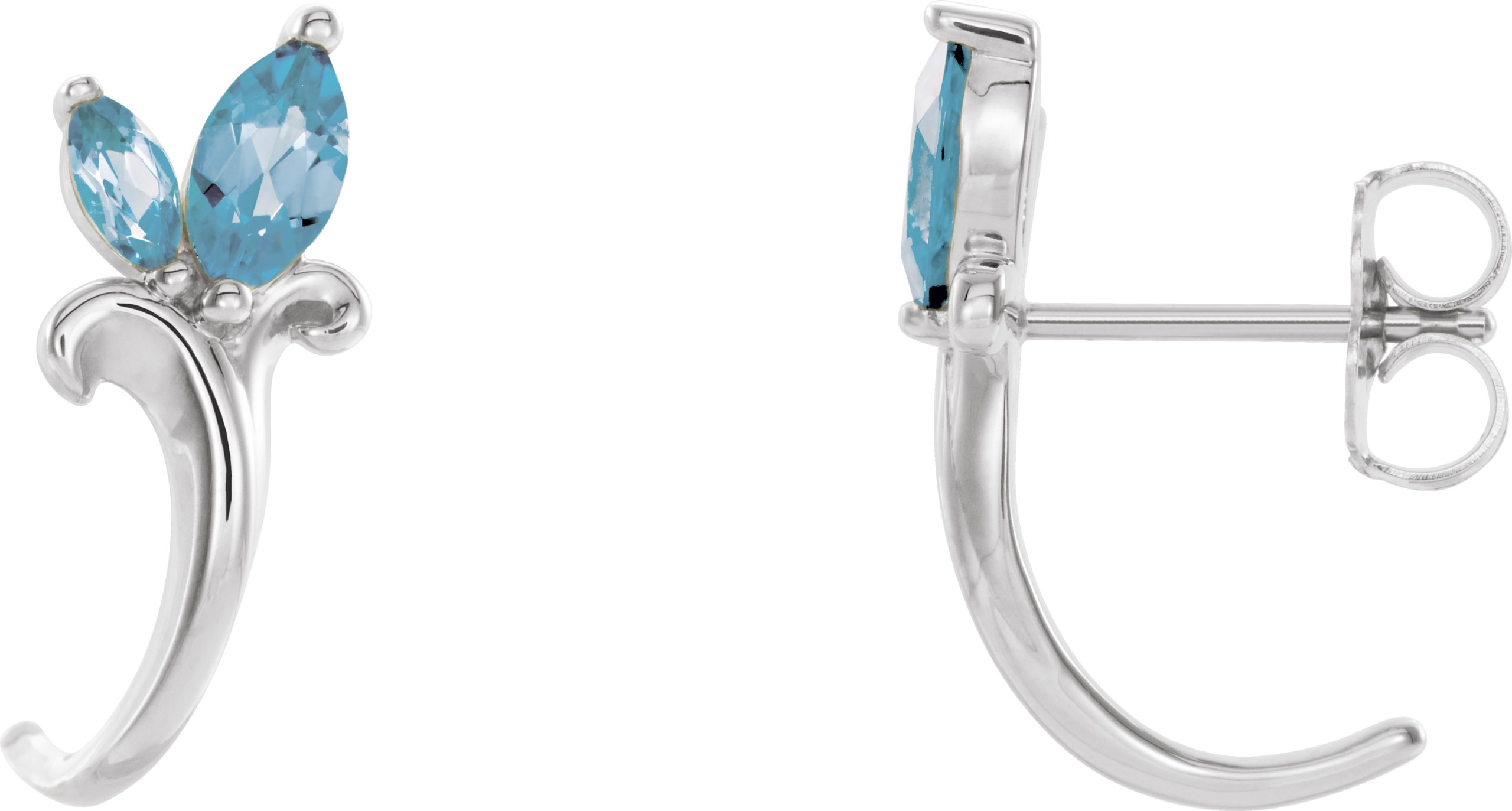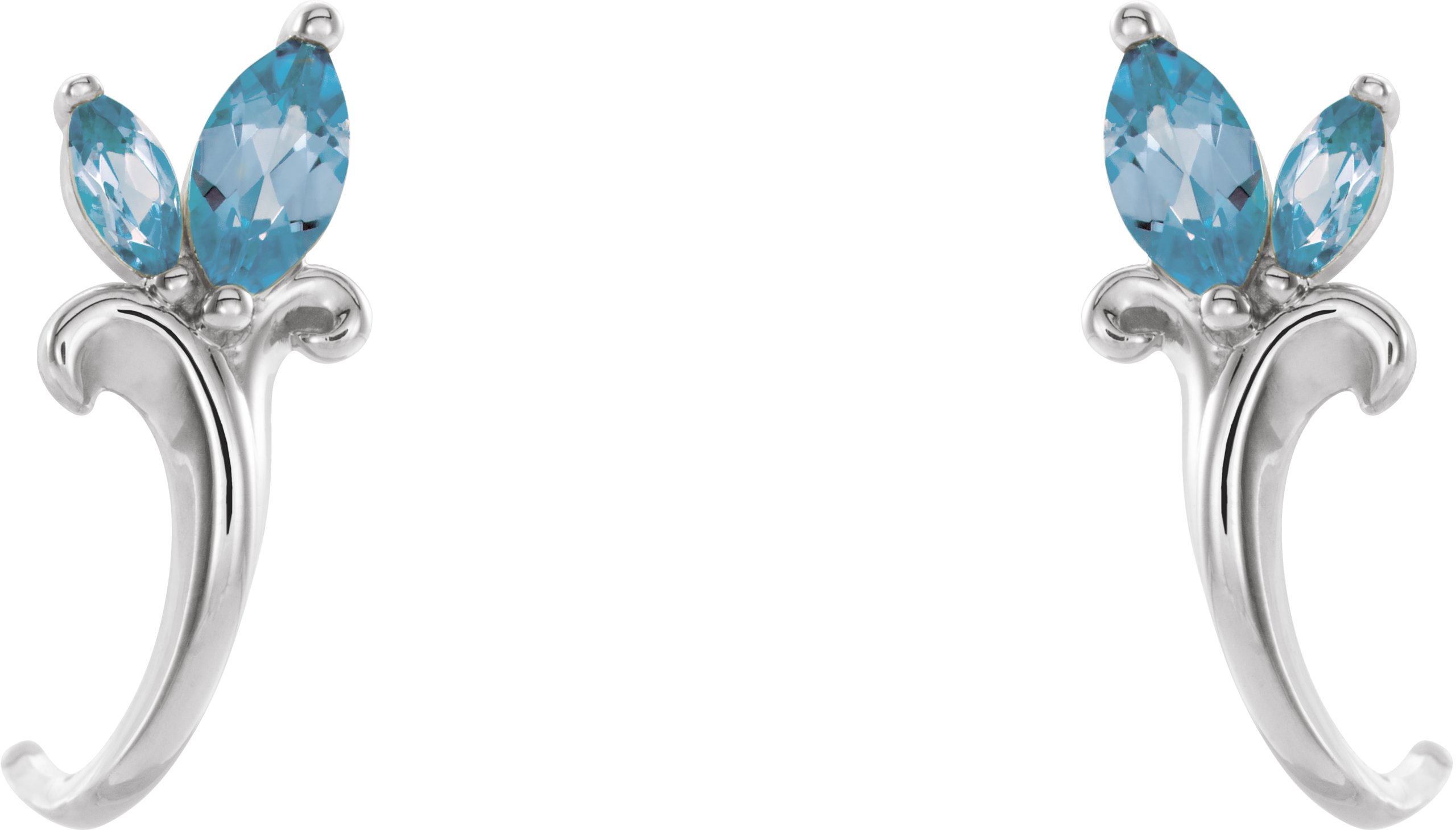 Description: Genuine Aquamarine Floral-Inspired J-Hoop Earrings