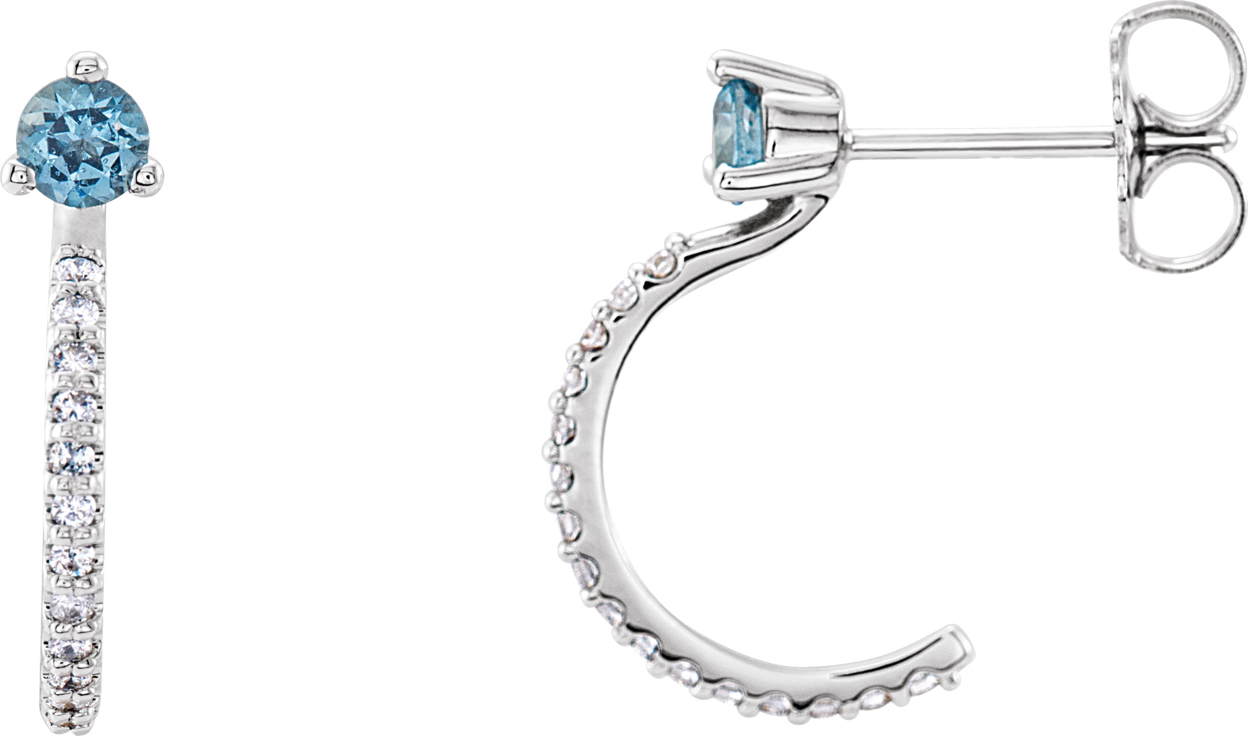 Platinum Aquamarine and .17 CTW Diamond Hoop Earrings