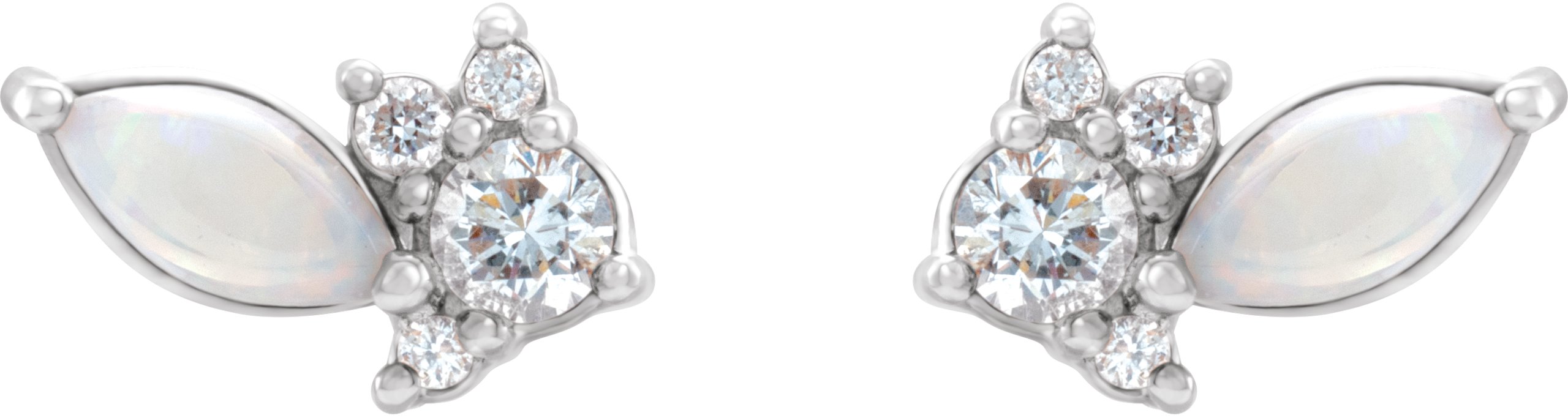Platinum Australian Opal & 1/6 CTW Diamond Cluster Earrings