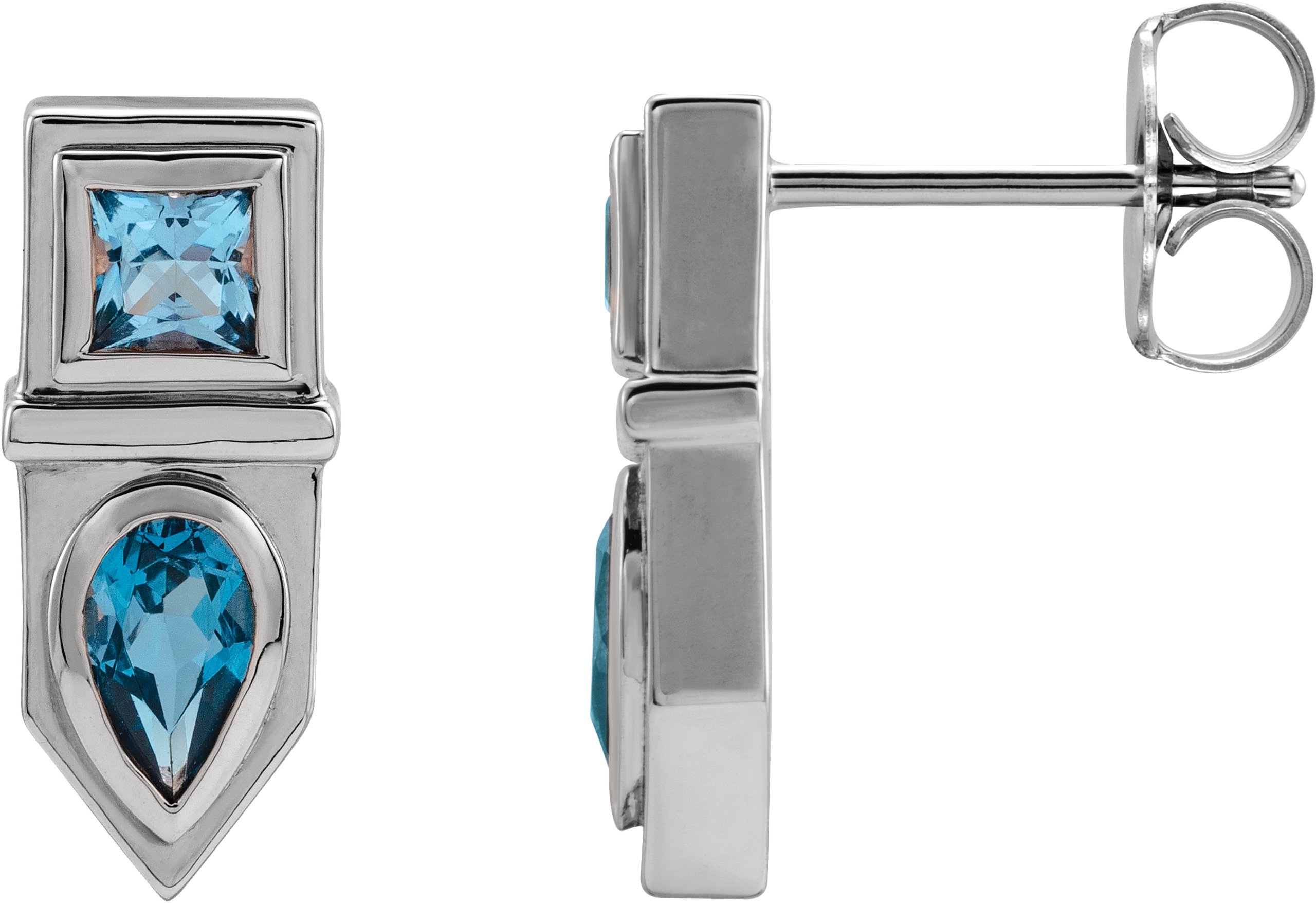 Description: Genuine Blue Multi-Gemstone Geometric Bar Drop Earrings