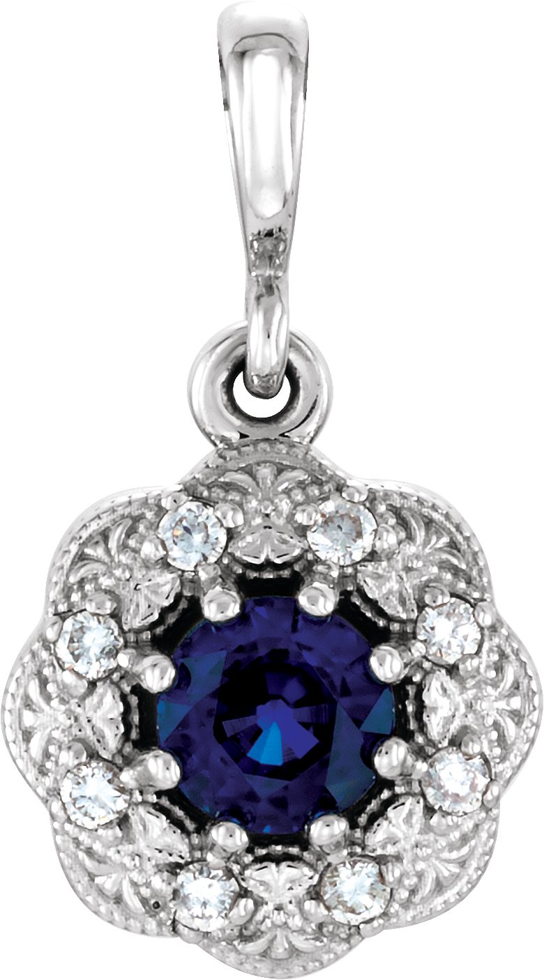 Platinum Blue Sapphire and .06CTW Diamond Pendant