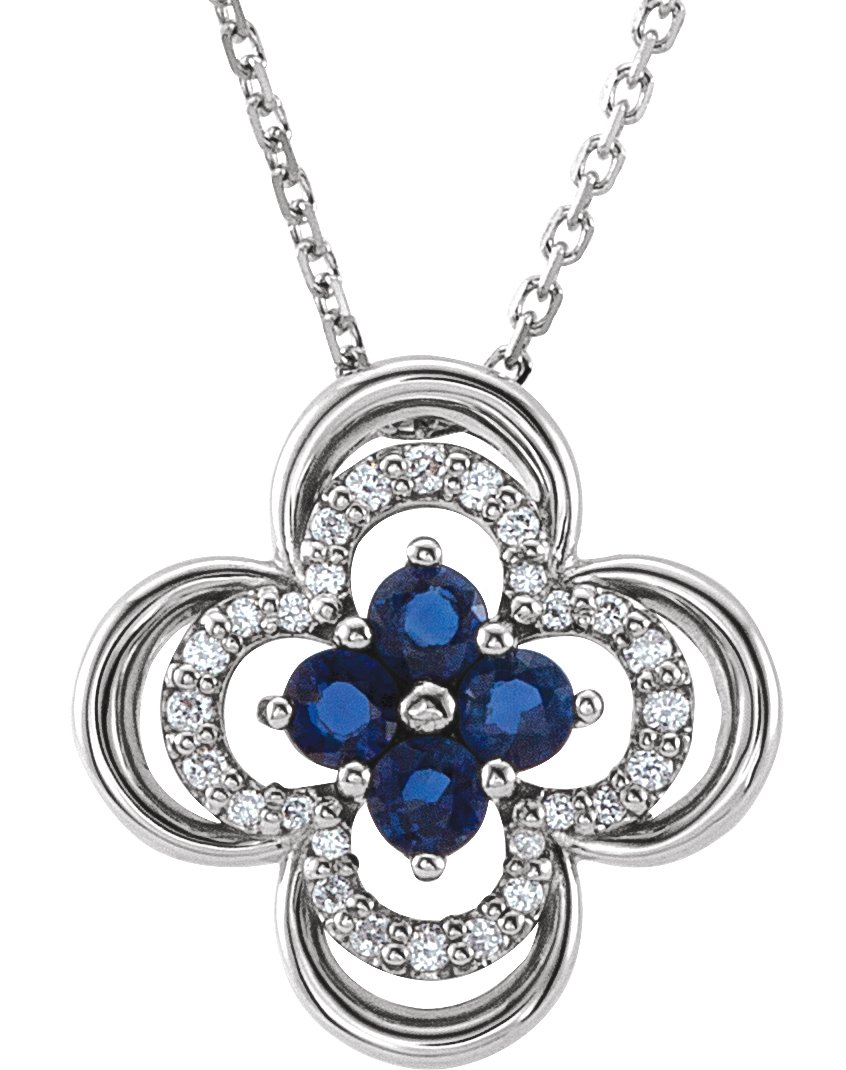 Platinum Blue Sapphire and .10 CTW Diamond Clover 18 inch Necklace