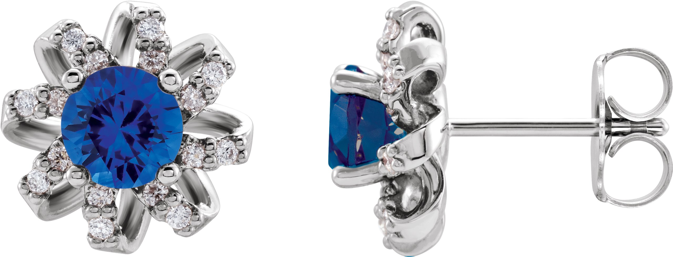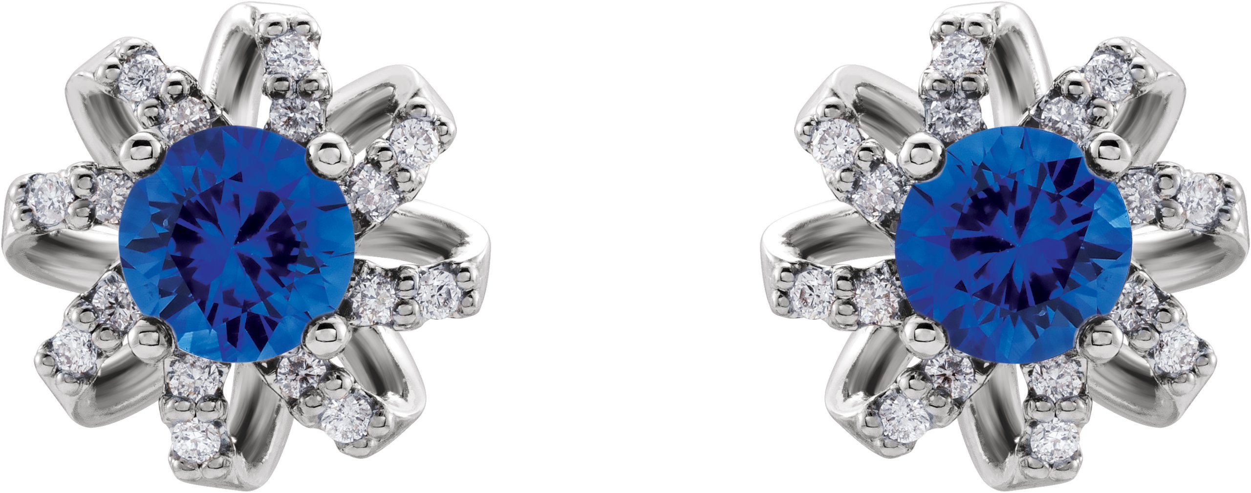 Platinum Blue Sapphire and .125 CTW Diamond Halo Style Earrings