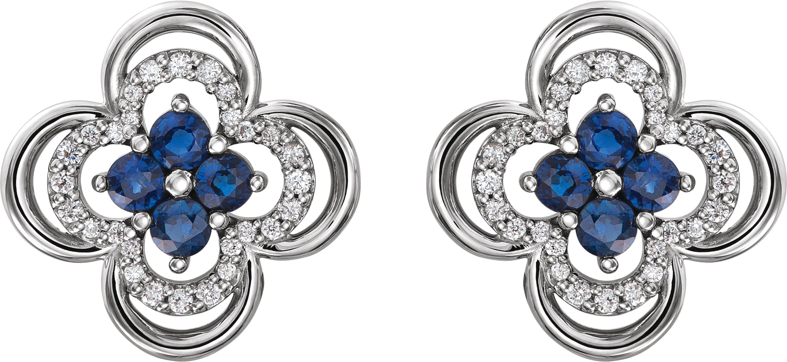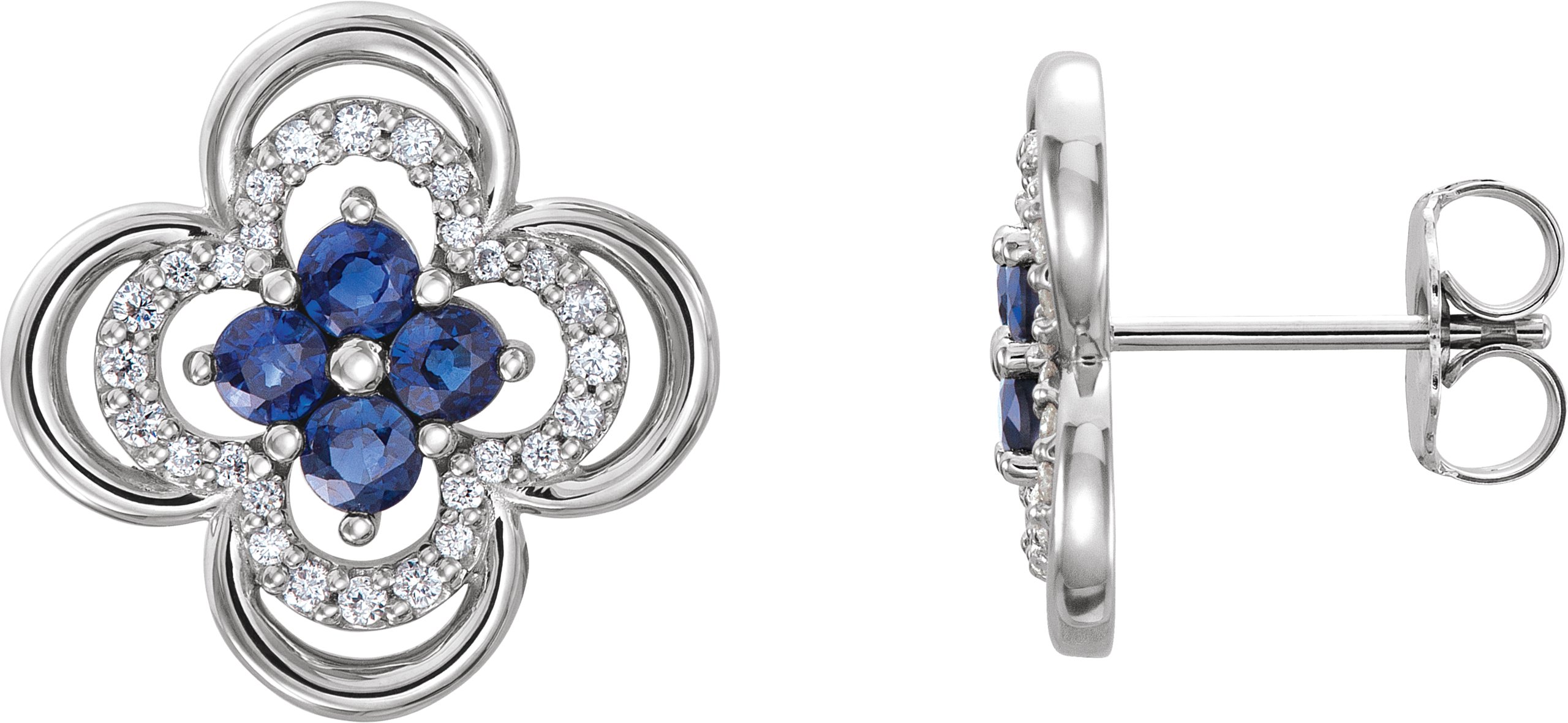 Description: Genuine Blue Sapphire And 1/5Ctw Diamond Clover Earrings With Backs