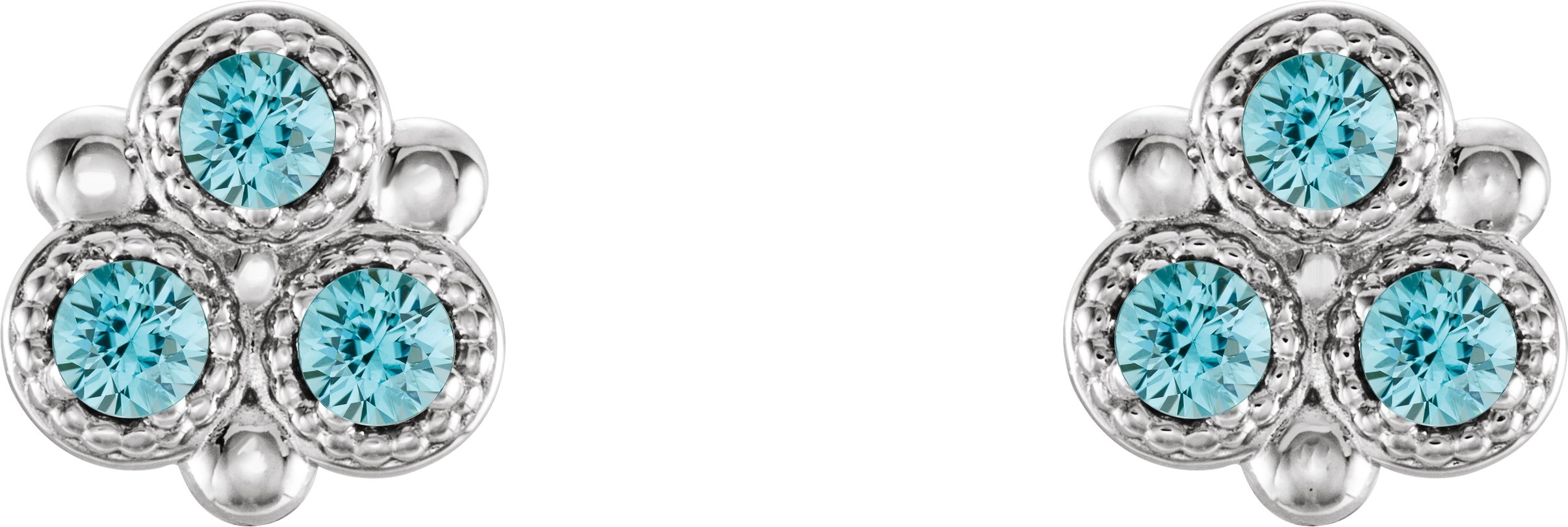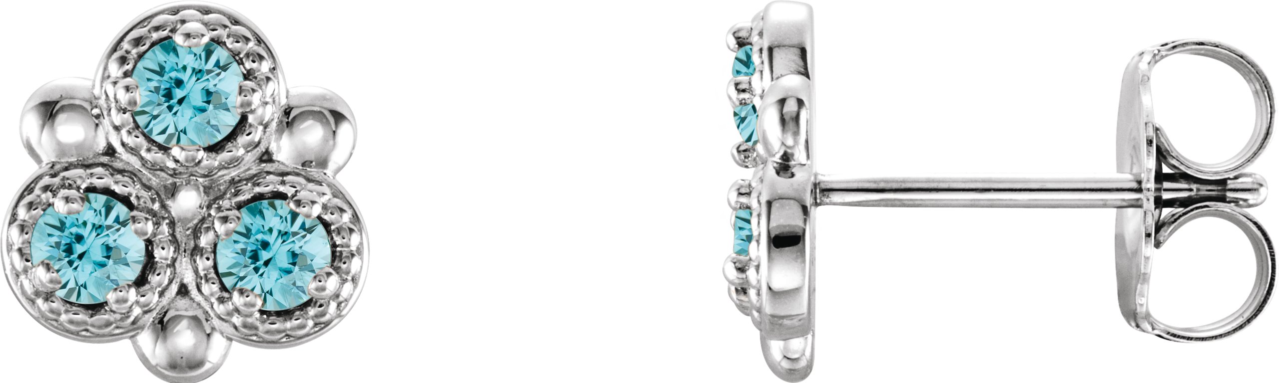 Platinum Blue Zircon Three Stone Earrings