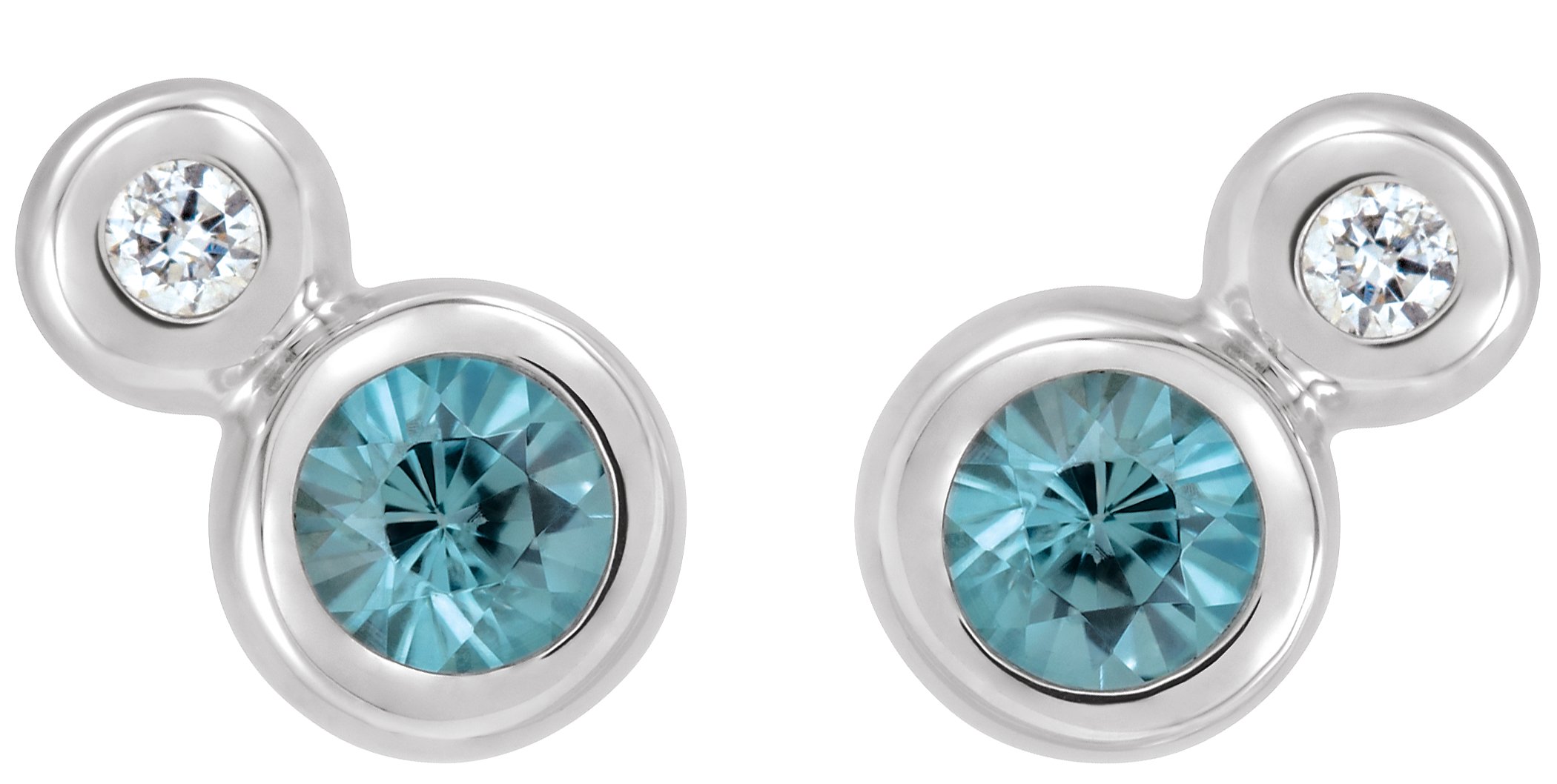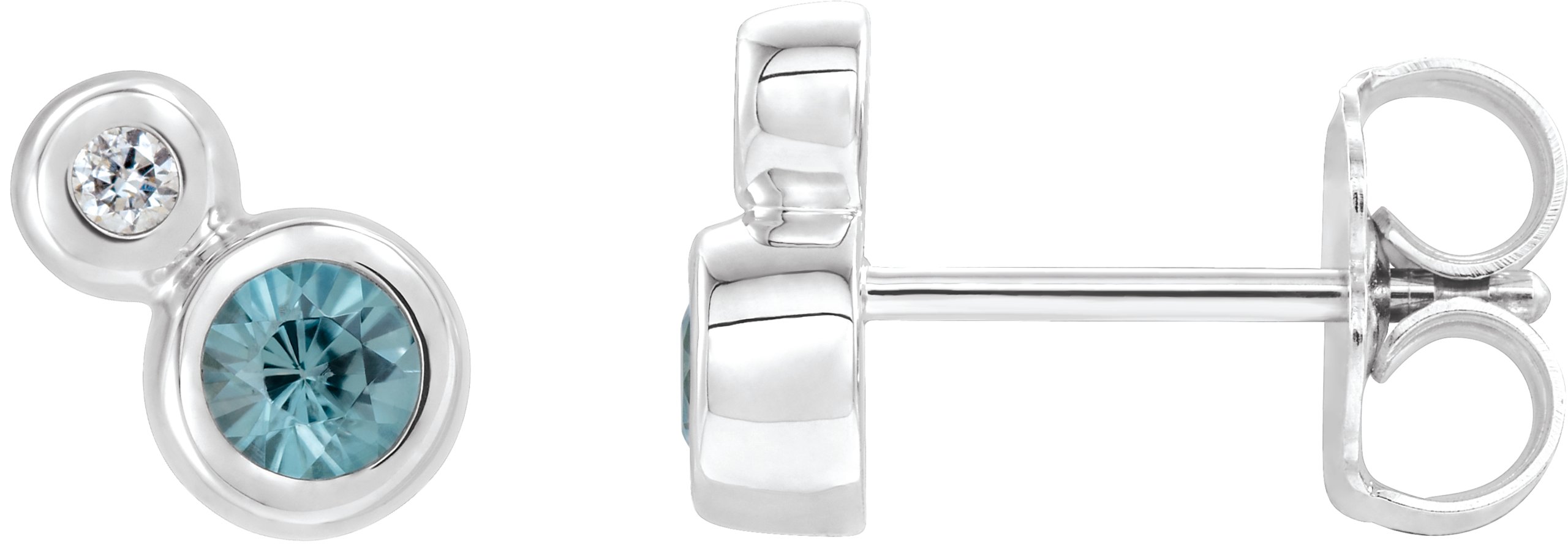 Platinum Blue Zircon & 1/8 CTW Diamond Earrings