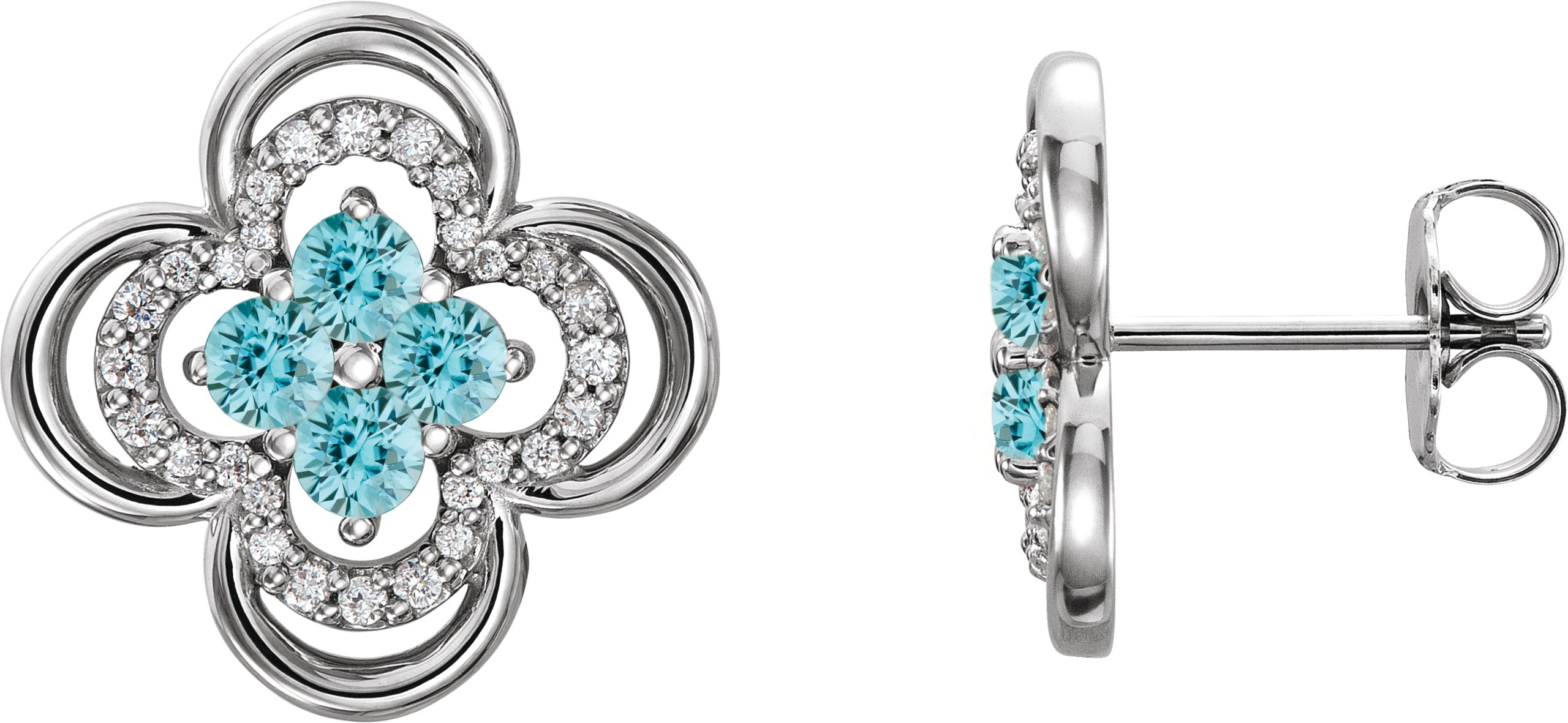Platinum Blue Zircon & 1/5 CTW Diamond Clover Earrings