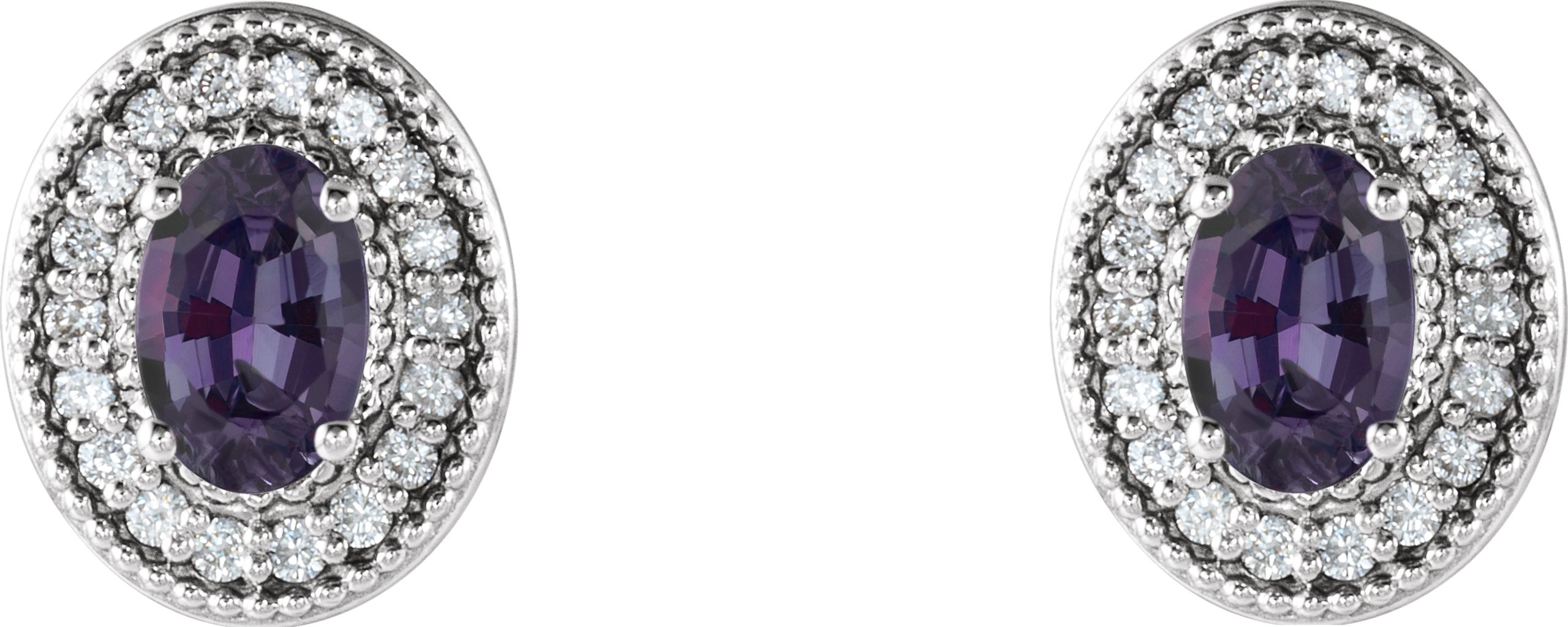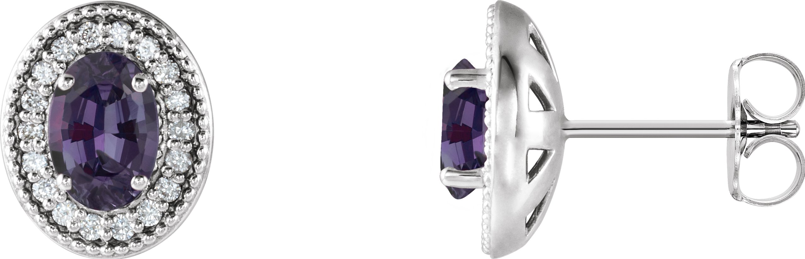 Platinum Chatham Created Alexandrite & 1/5 CTW Diamond Halo Style Earrings
