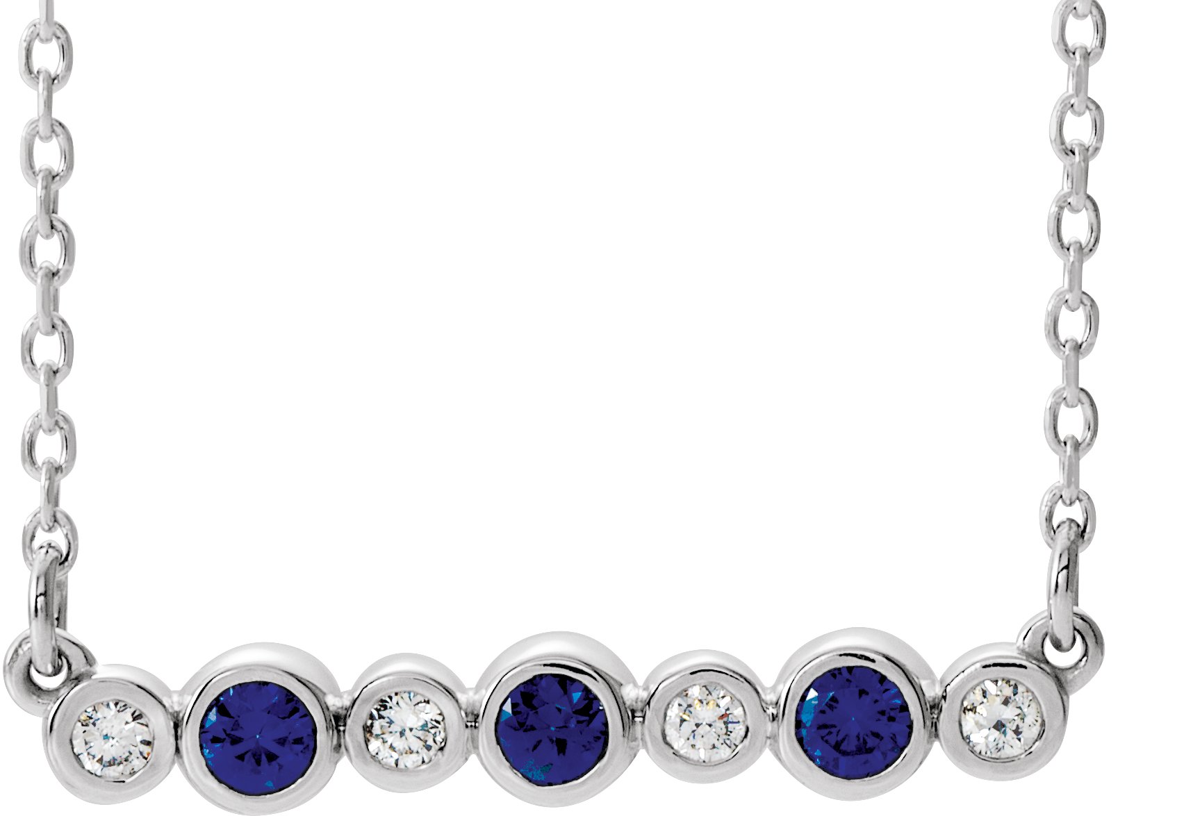 Description: Genuine Blue Sapphire And .08 Ctw Diamond Bar Necklace