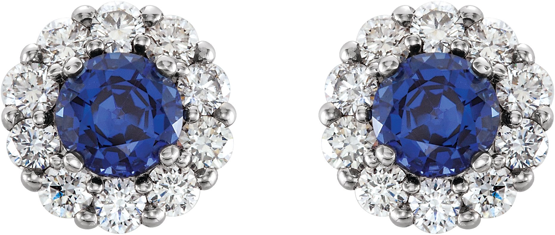 Description: 1/2 CTW Chatham Created Blue Sapphire And 1/2 CTW Diamond Earrings