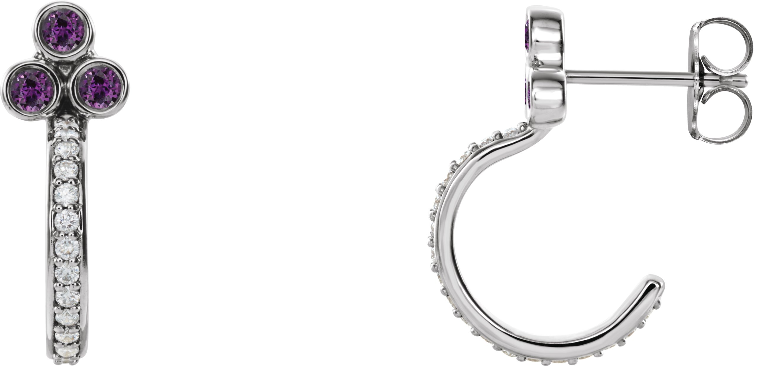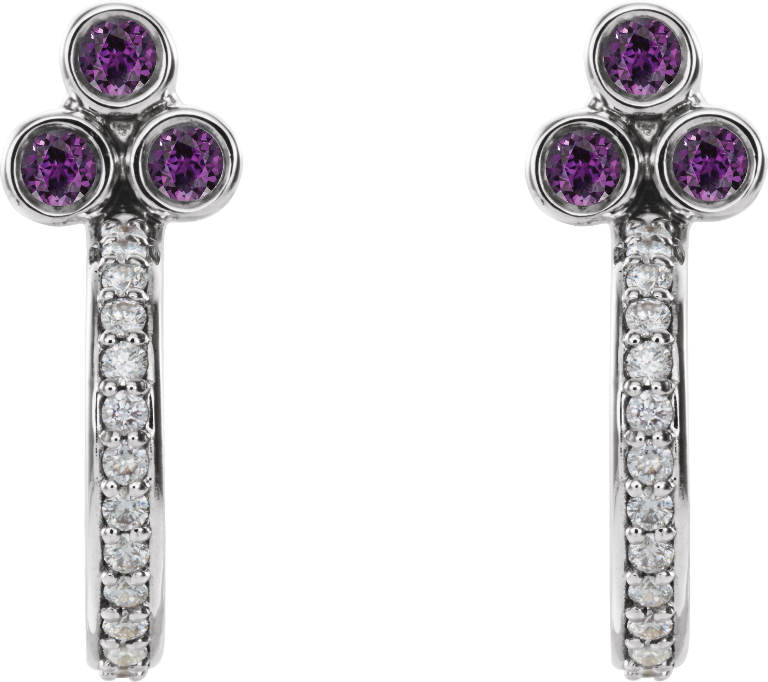 Description: Chatham Lab-Created Alexandrite And 1/4 Ctw Diamond J-Hoop Earrings