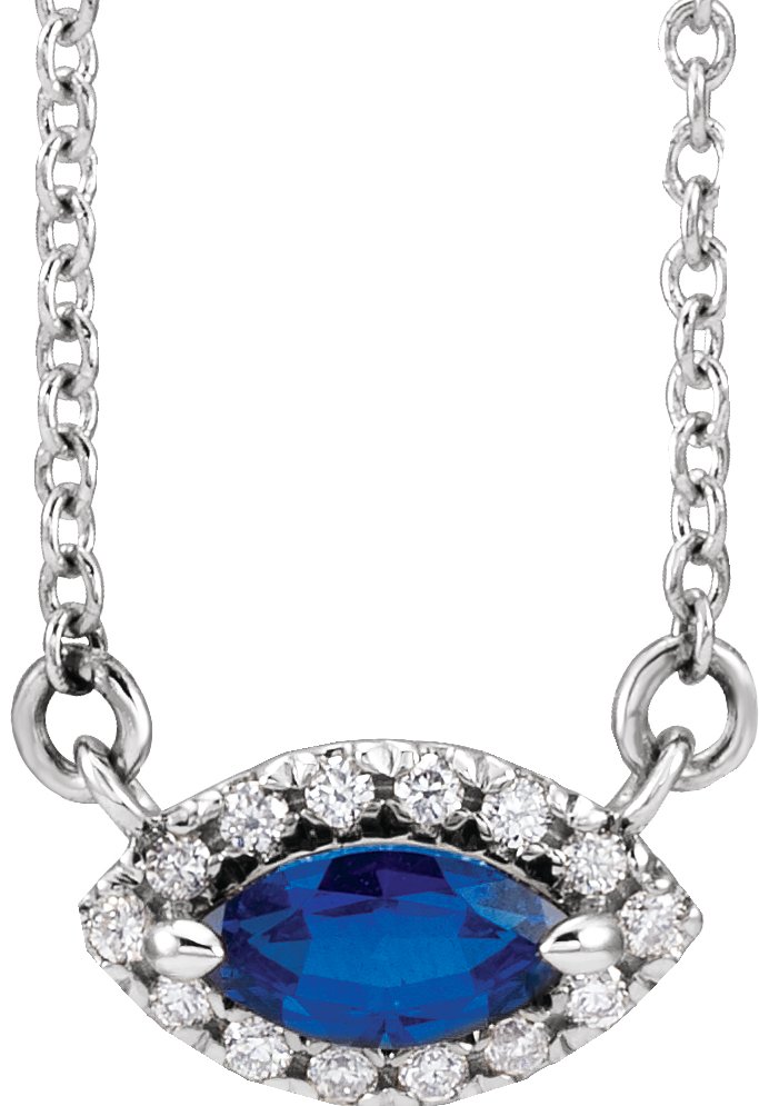 Platinum Chatham Lab Created Blue Sapphire & .06 CTW Diamond 16 inch Necklace