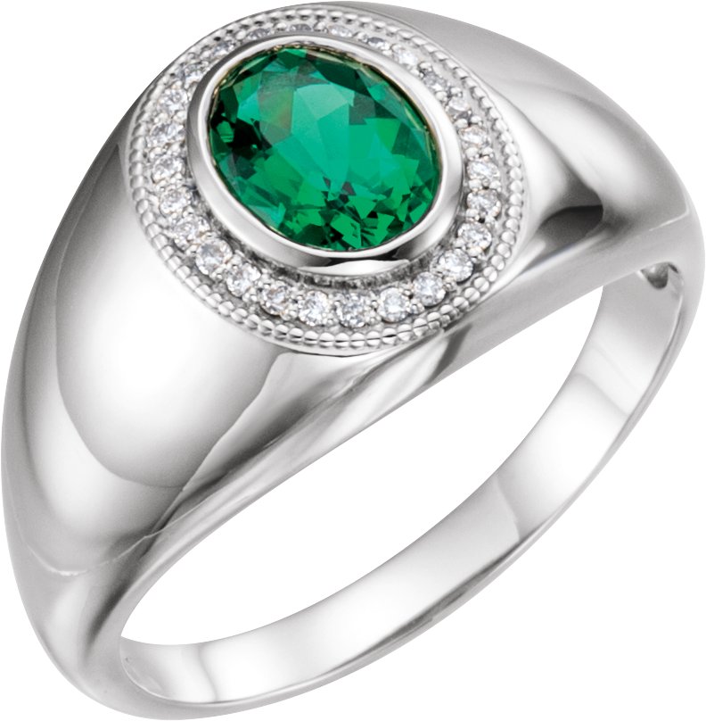Description: Chatham Created Emerald And 1/8 Ctw Diamond Ring