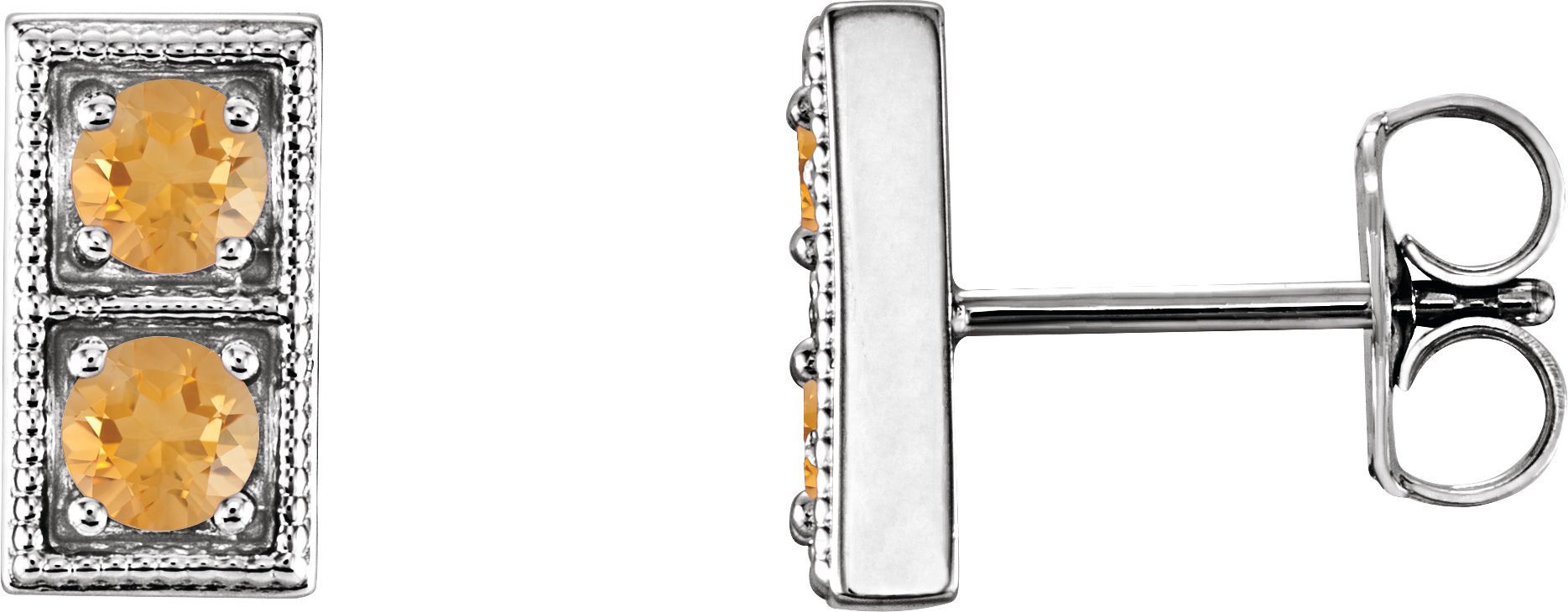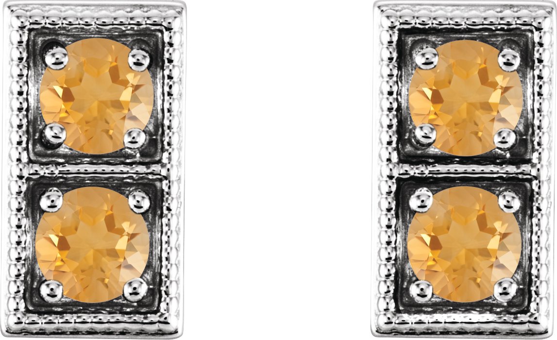 Platinum Citrine Two Stone Earrings