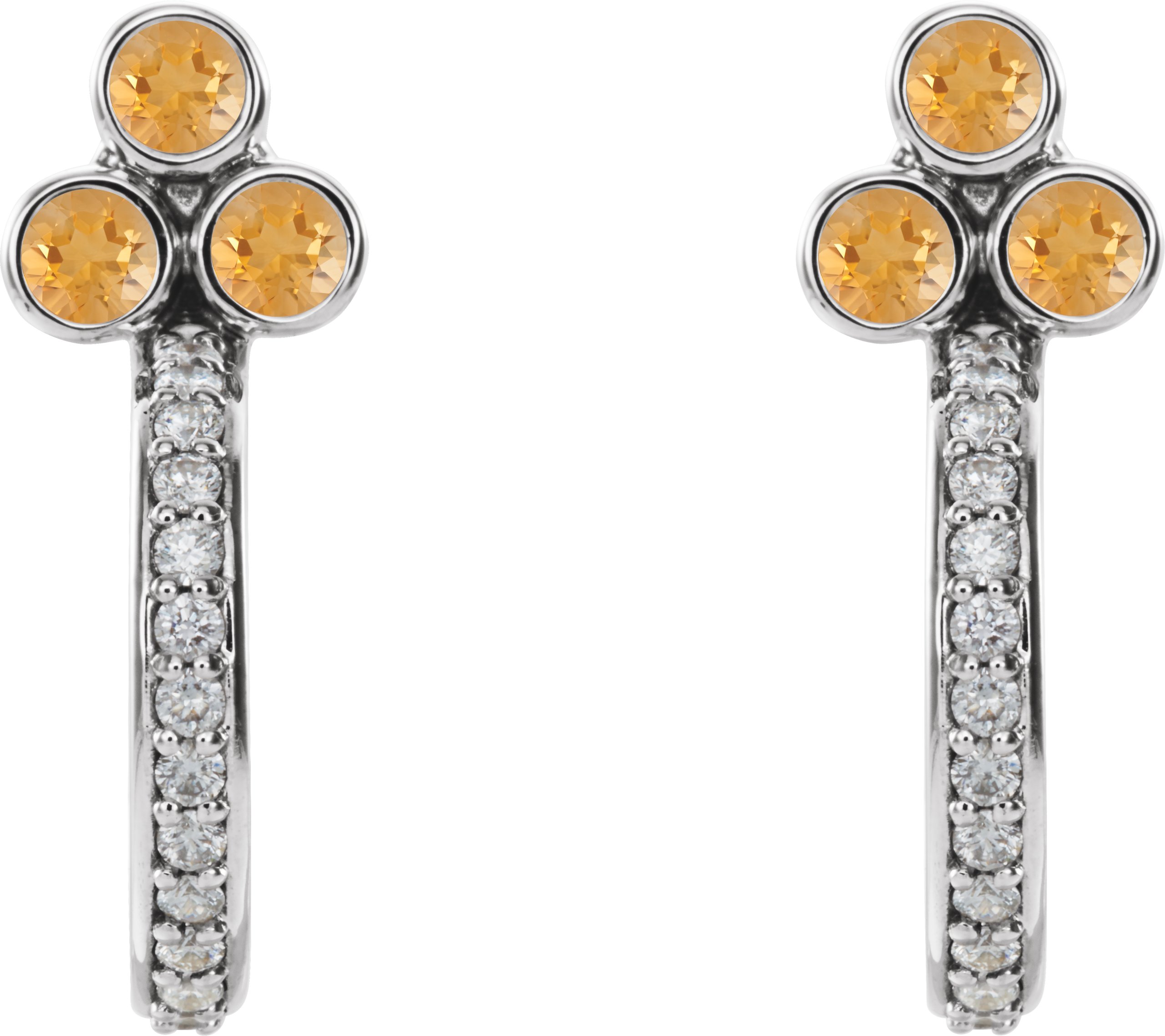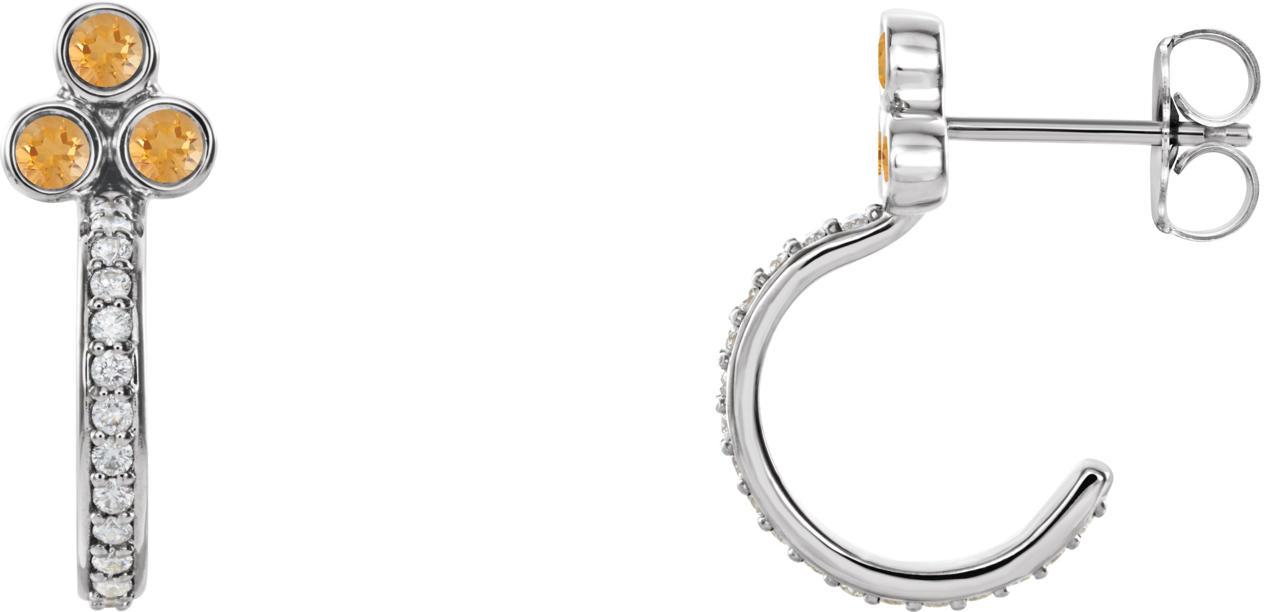 Description: Genuine Citrine And 1/4 Ctw Diamond J-Hoop Earrings