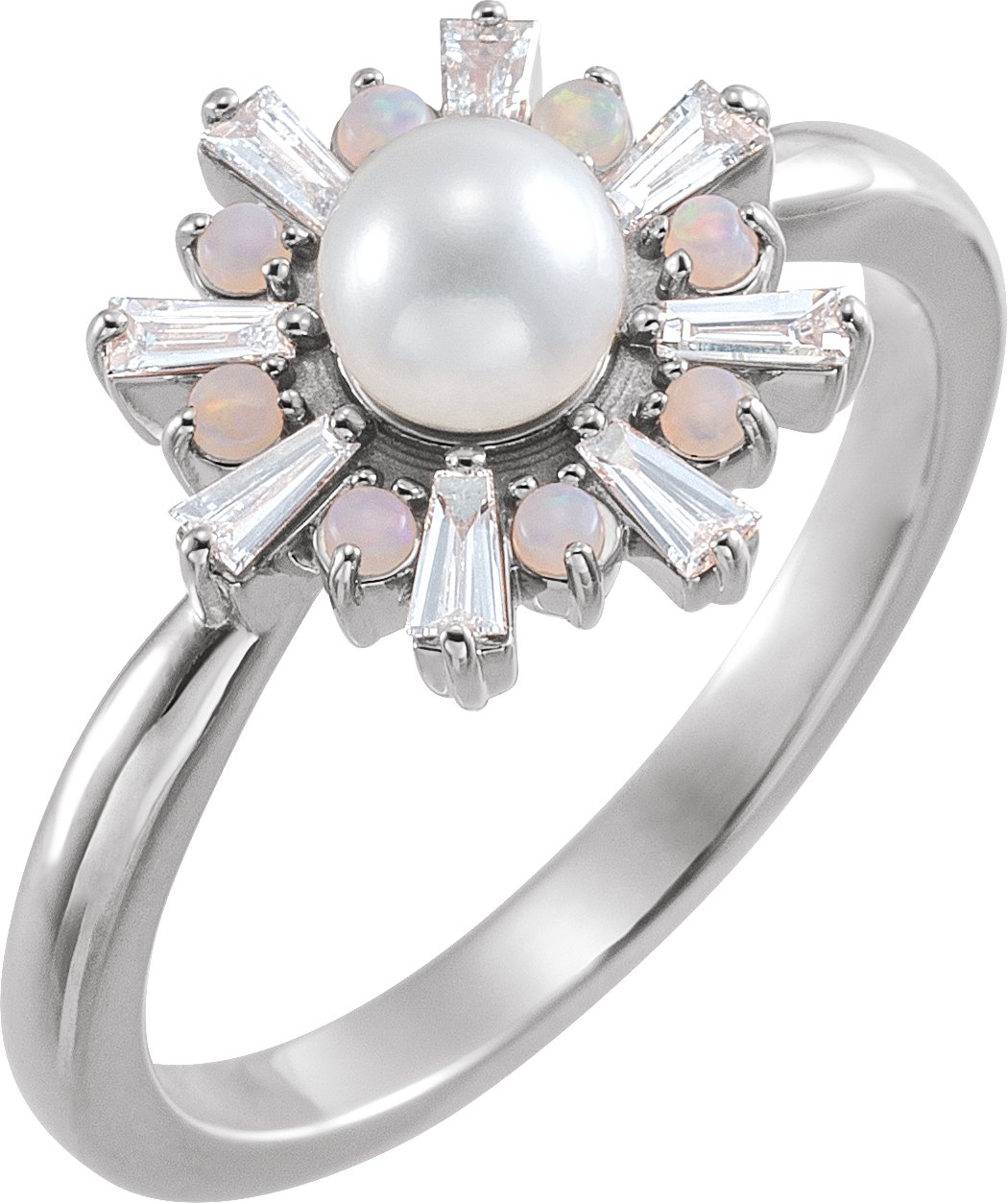 Description: Akoya Cultured White Pearl White Opal And 1/4 Ctw Diamond Ring