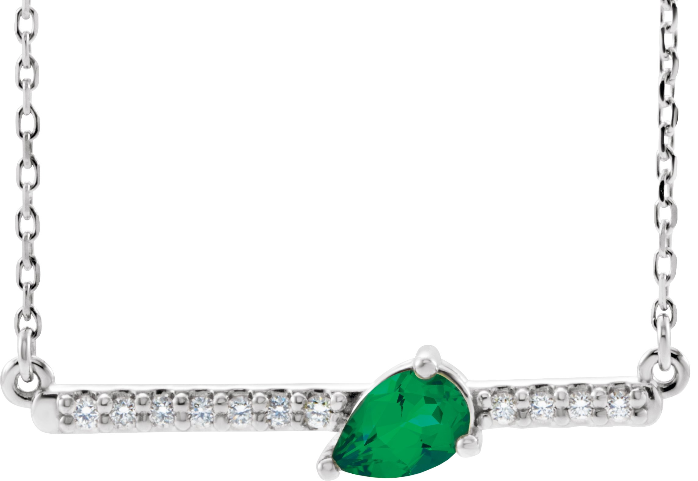 Platinum Emerald & 1/10 CTW Diamond 18 inch Necklace