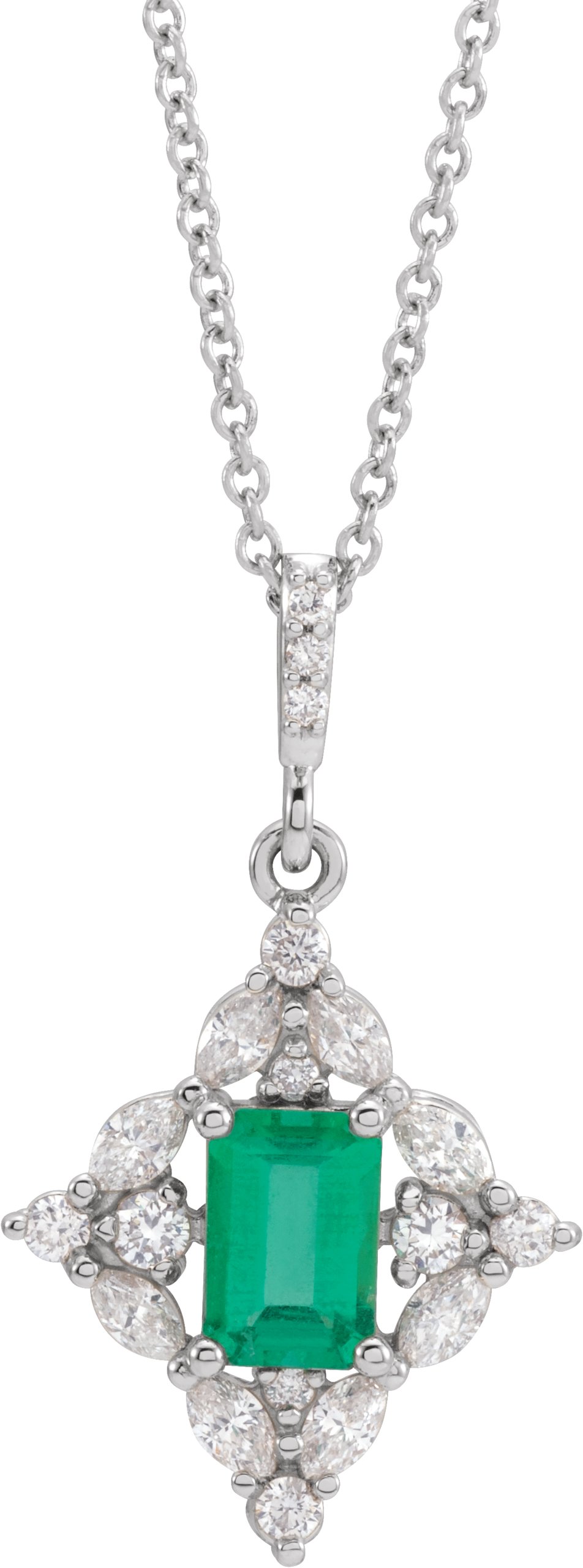 Platinum Emerald & 3/8 CTW Diamond 16 18 inch Necklace