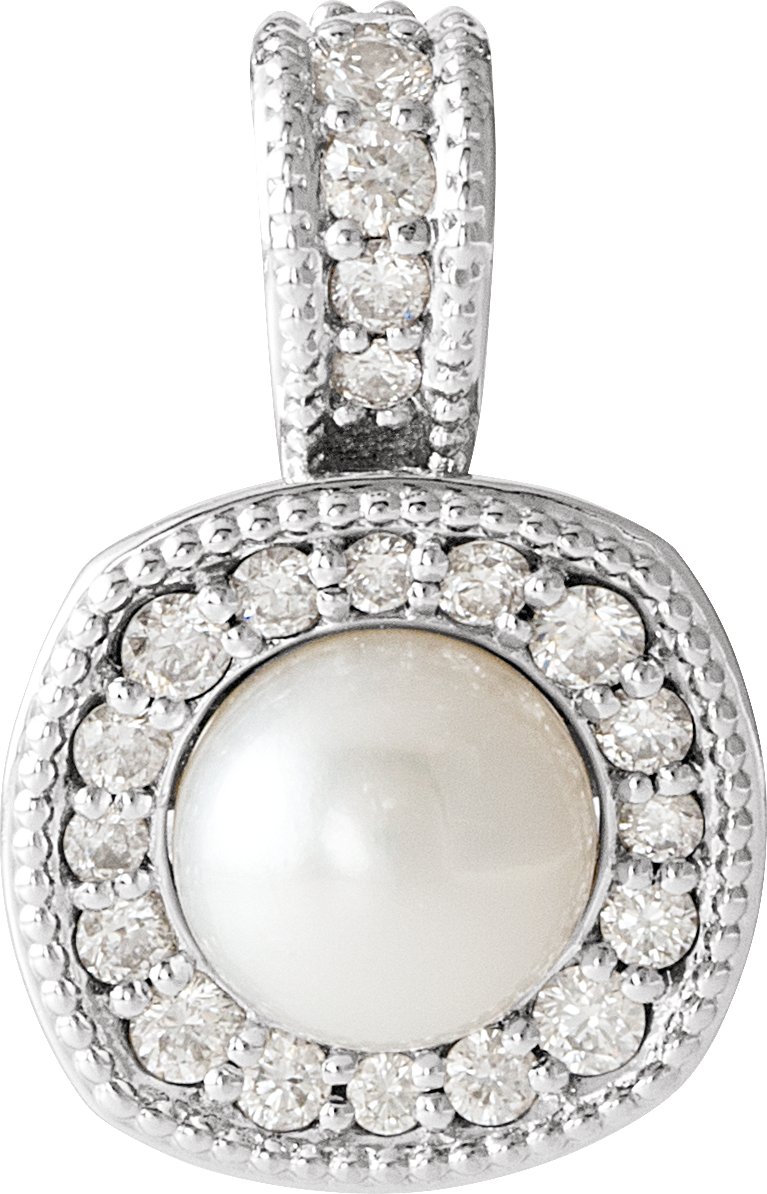 Description: White Freshwater Cultured Pearl And 1/4 Ctw Diamond Pendant