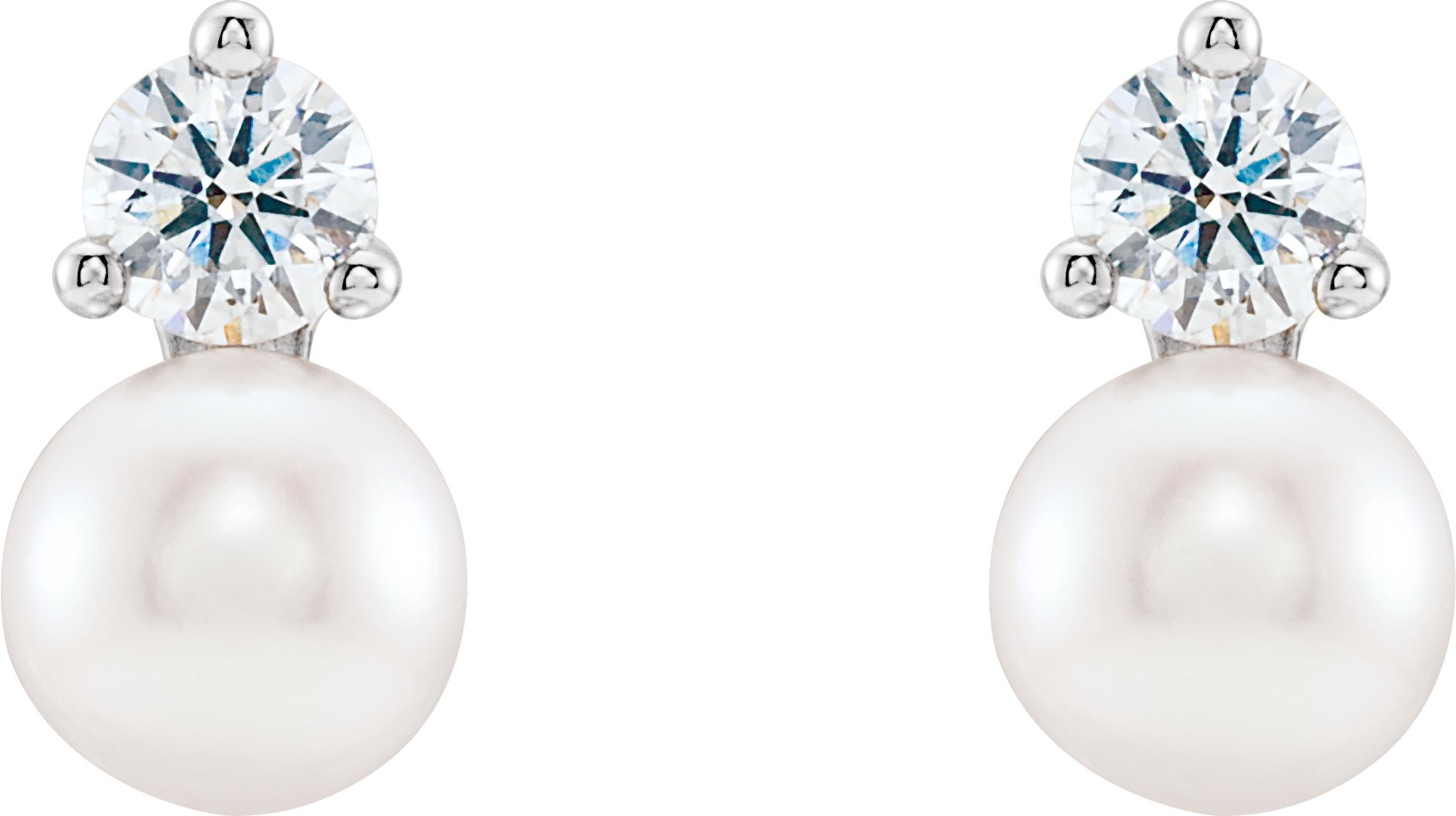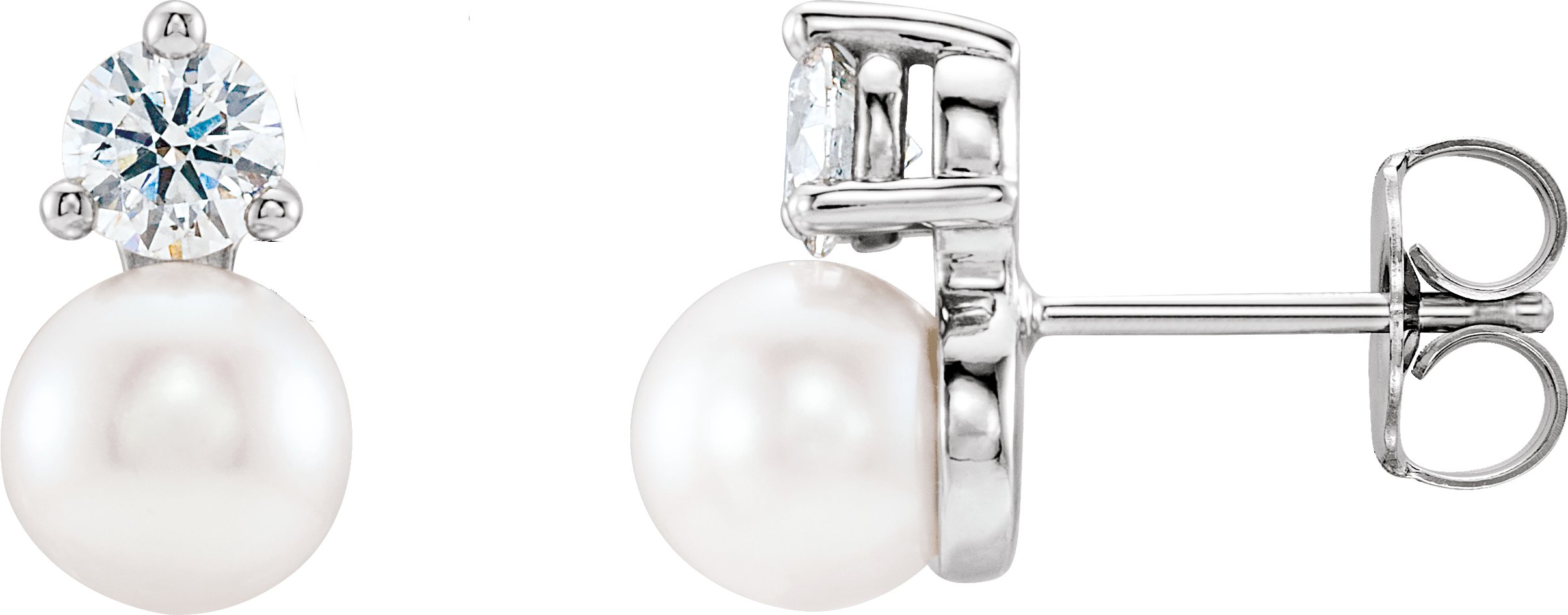 Platinum Freshwater Cultured Pearl & 1/2 CTW Diamond Earrings