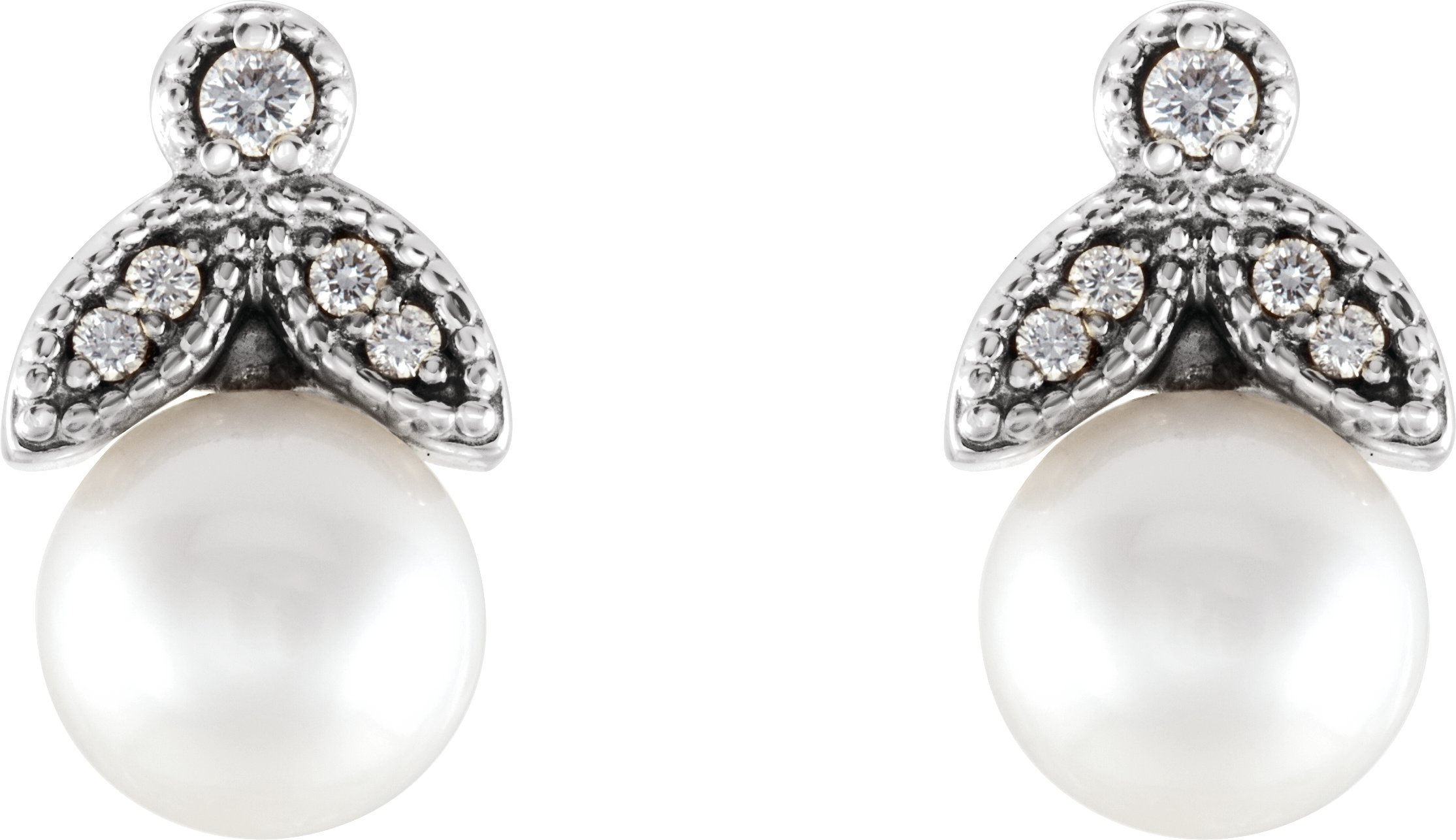 Platinum Freshwater Pearl & .06 CTW Diamond Earrings