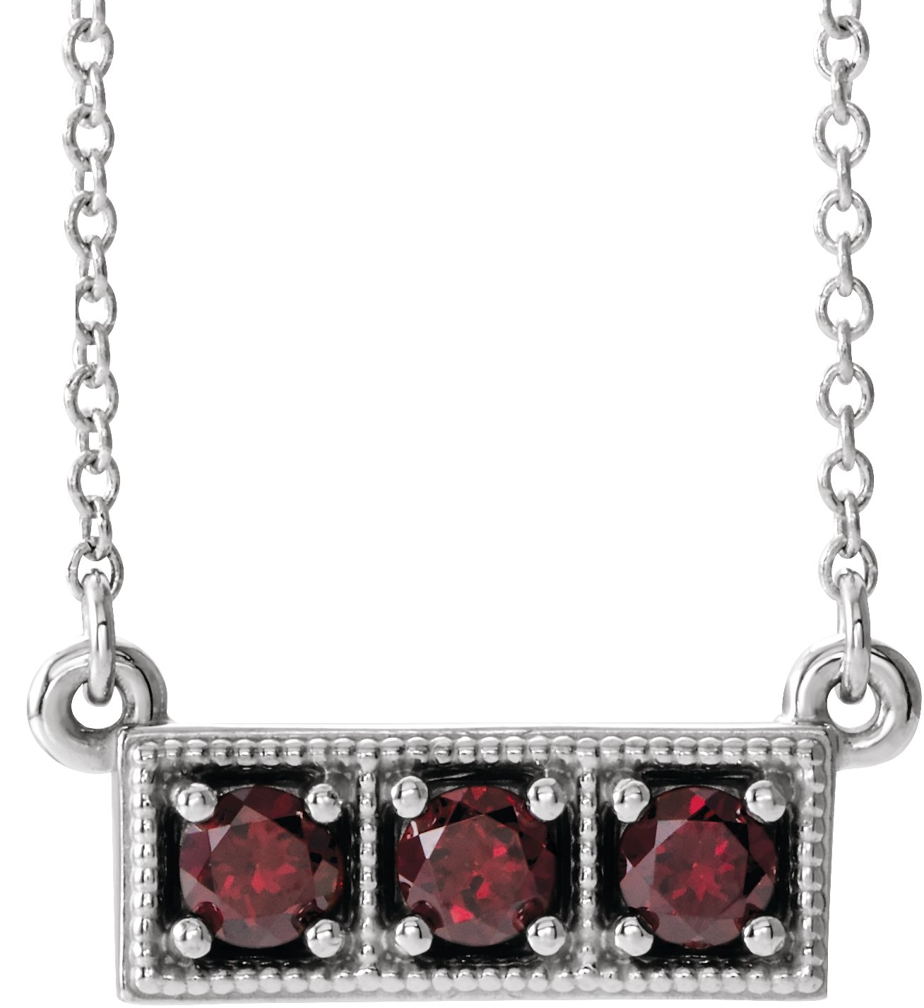 Platinum Mozambique Garnet Three Stone Granulated Bar 16 18" Necklace Ref. 14204213