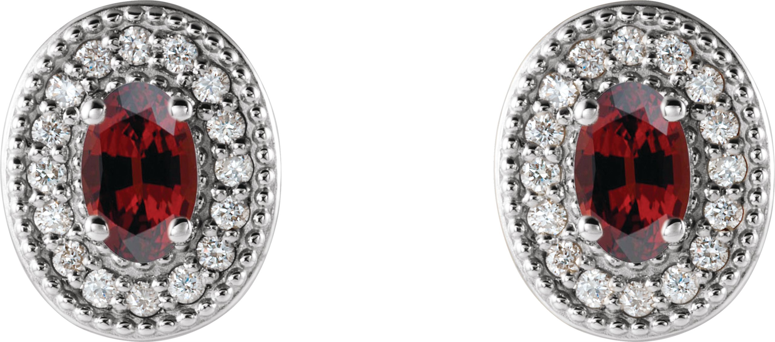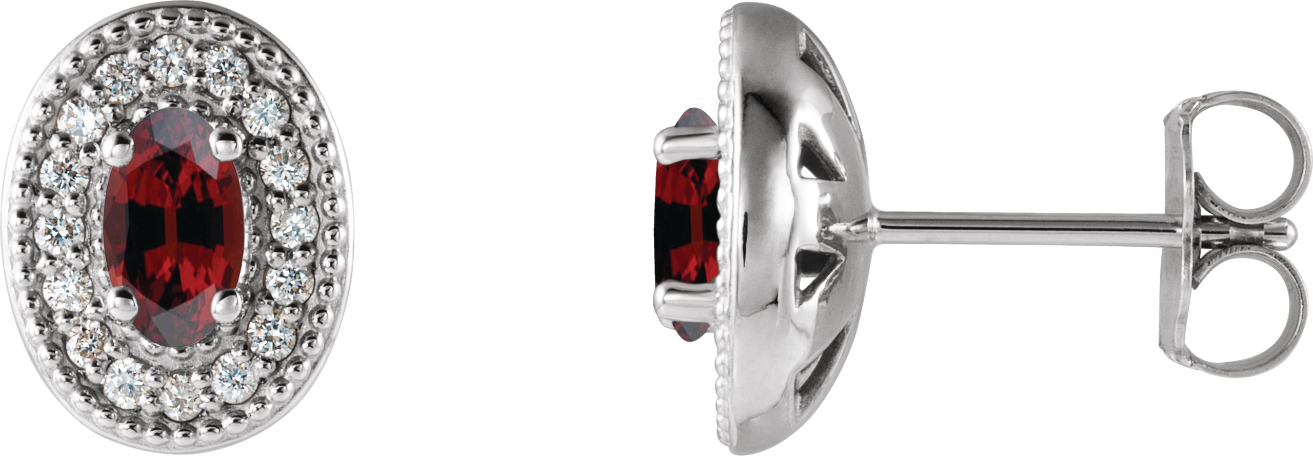Description: Genuine Garnet And 1/8 Ctw Diamond Earrings With Backs