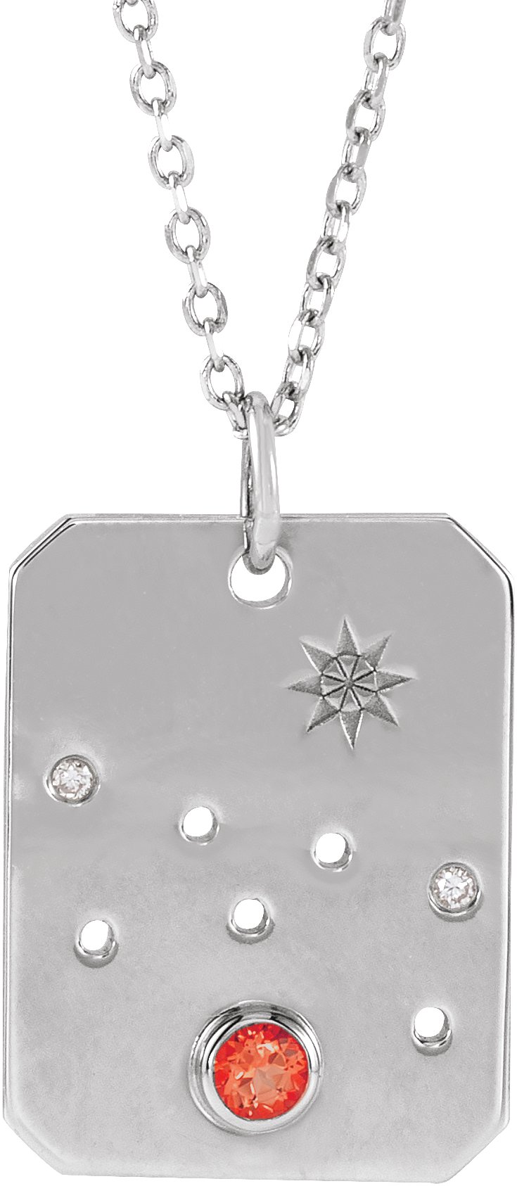 Description: Natural Mexican Fire Opal And Natural Diamond Accented Zodiac Constellation Necklace