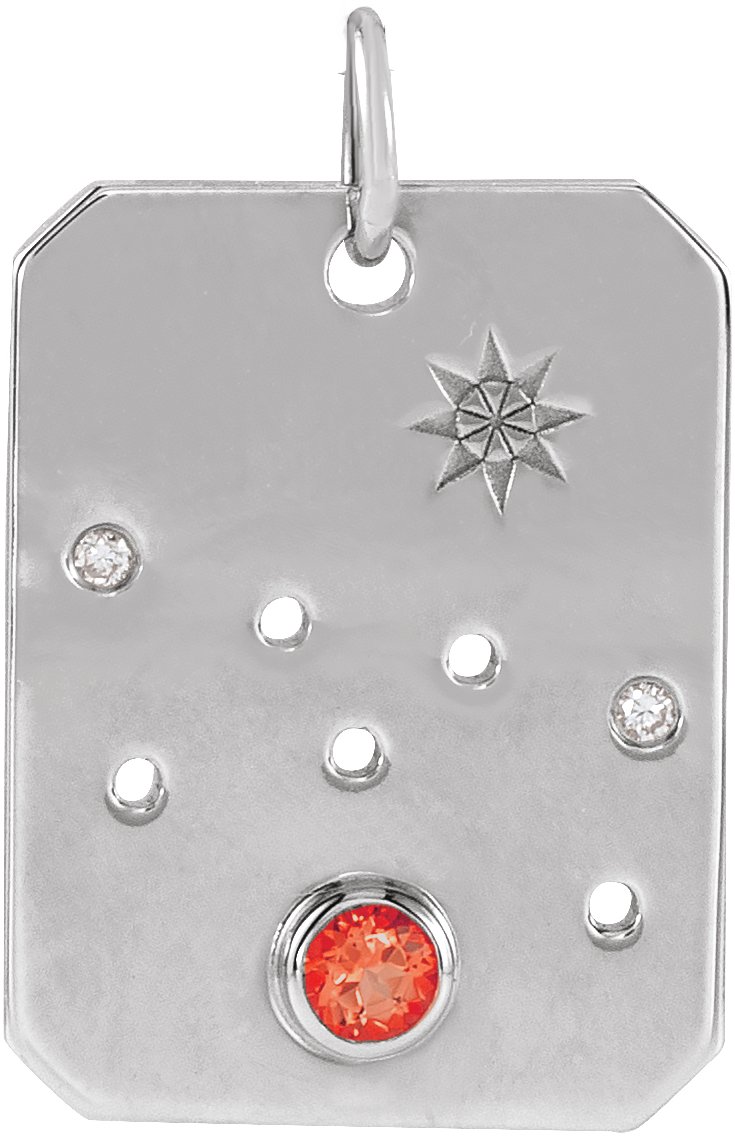 Description: Natural Mexican Fire Opal And Natural Diamond Accented Zodiac Constellation Pendant