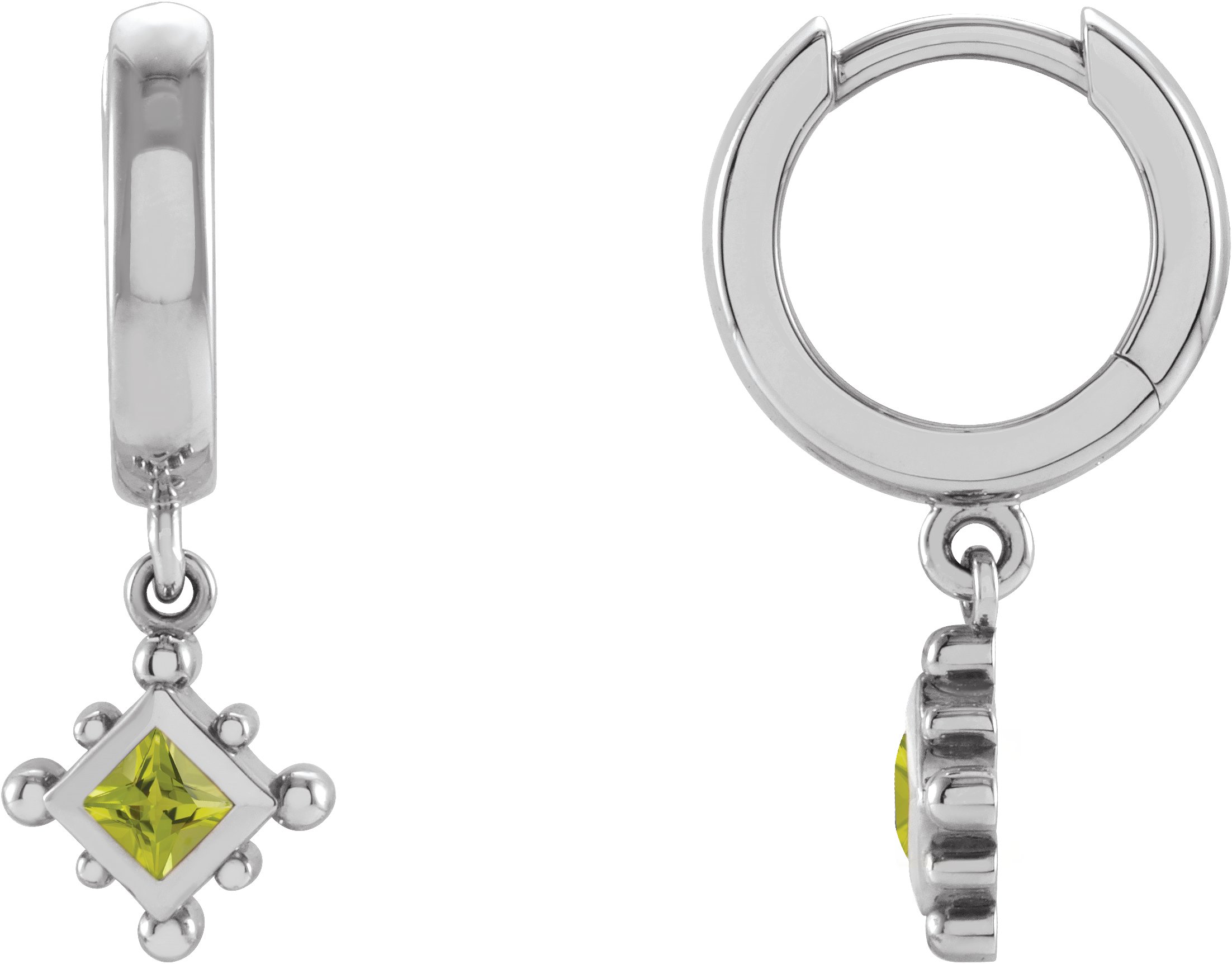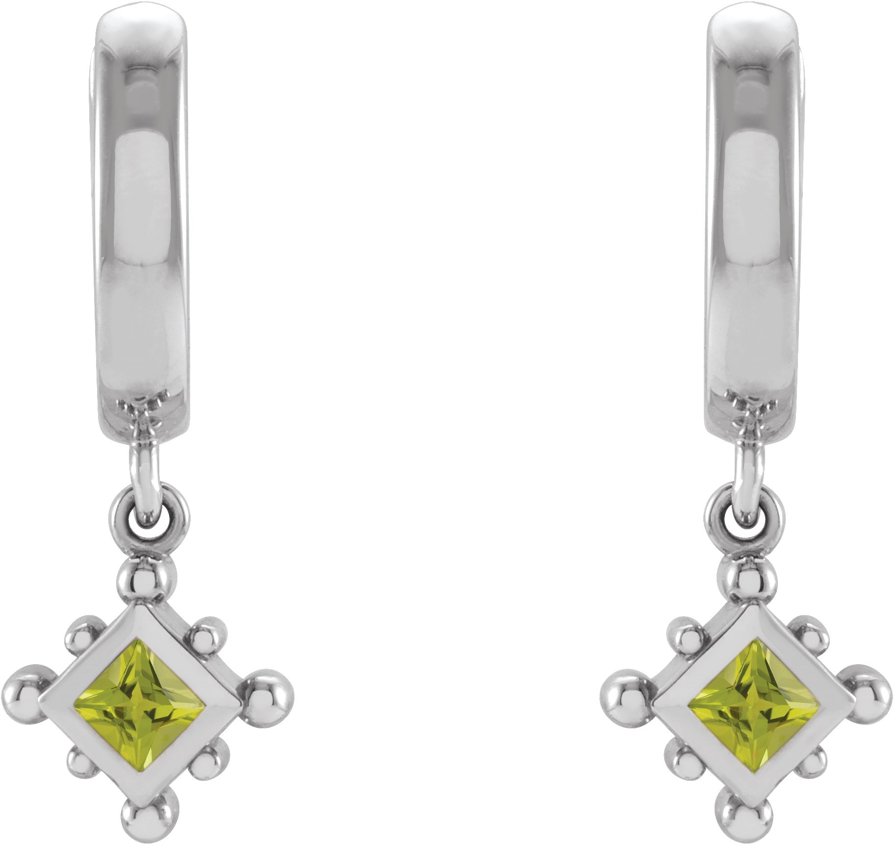 Platinum Natural Peridot Beaded Bezel Set Hoop Earrings Ref 18069115