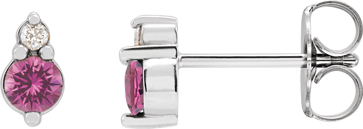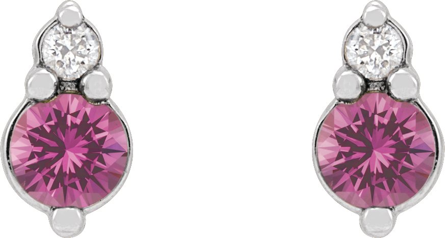 Description: Natural Pink Sapphire And .03 CTW Natural Diamond Earrings