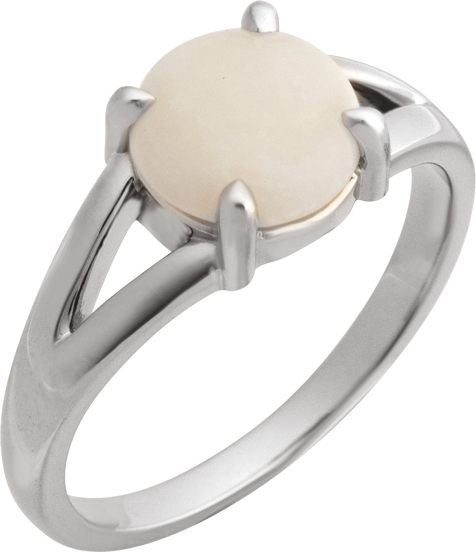 Description: Natural White Opal Solitaire Cabochon Ring