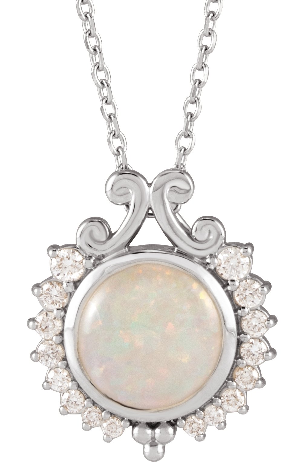 Description: Natural White Opal And 1/6 CTW Natural Diamond Necklace