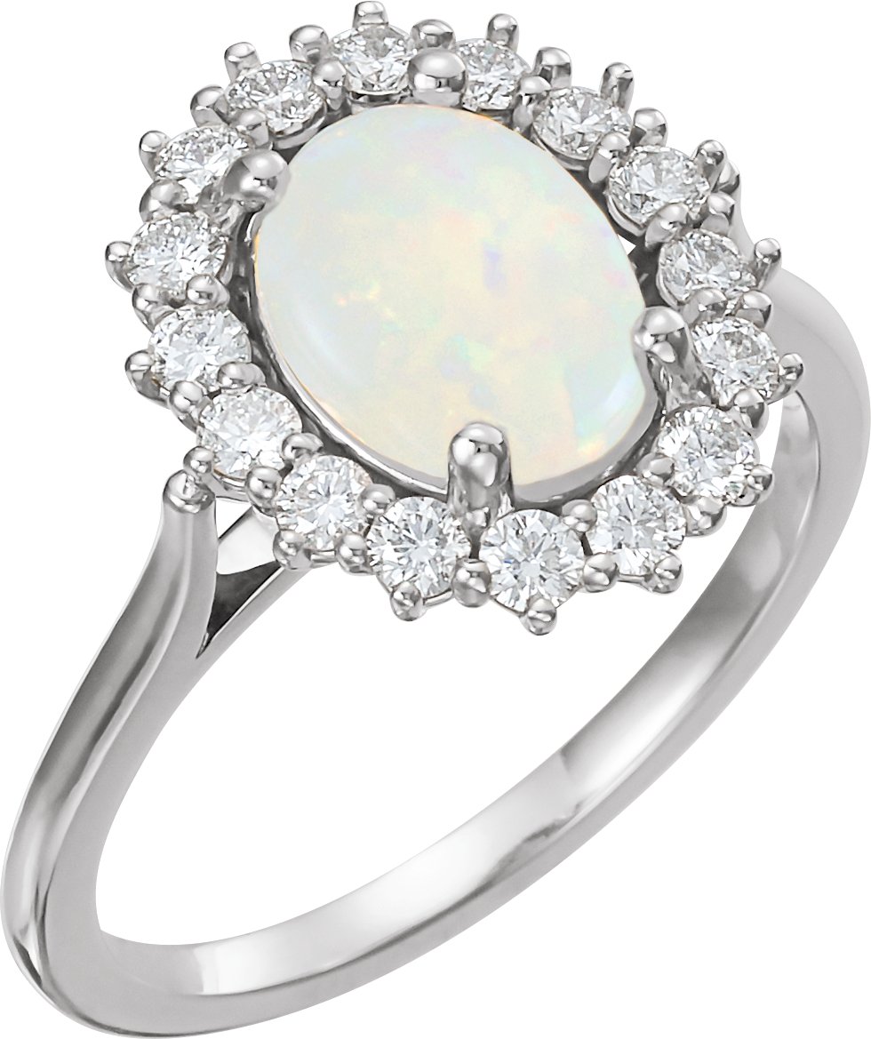 Description: Genuine White Opal And 1/2 CTW Diamond Ring