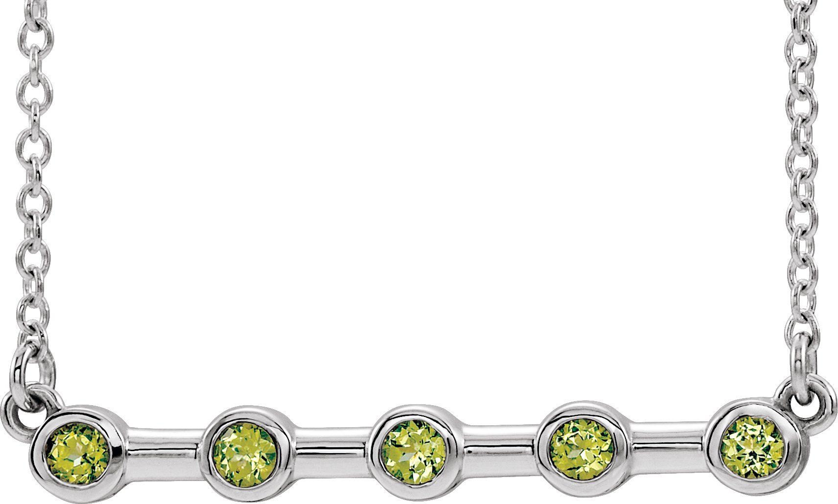 Platinum Peridot Bezel Set Bar 16 inch Necklace