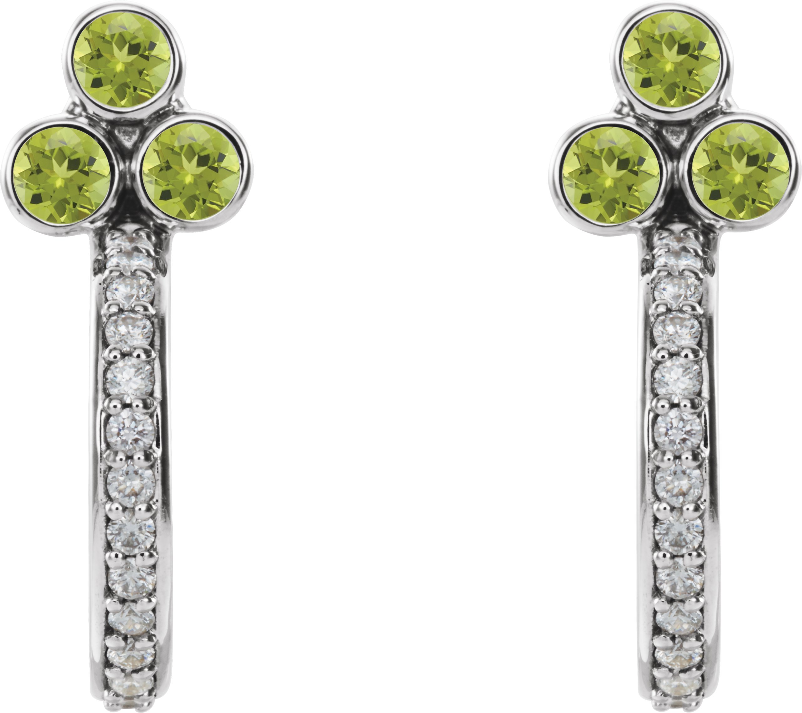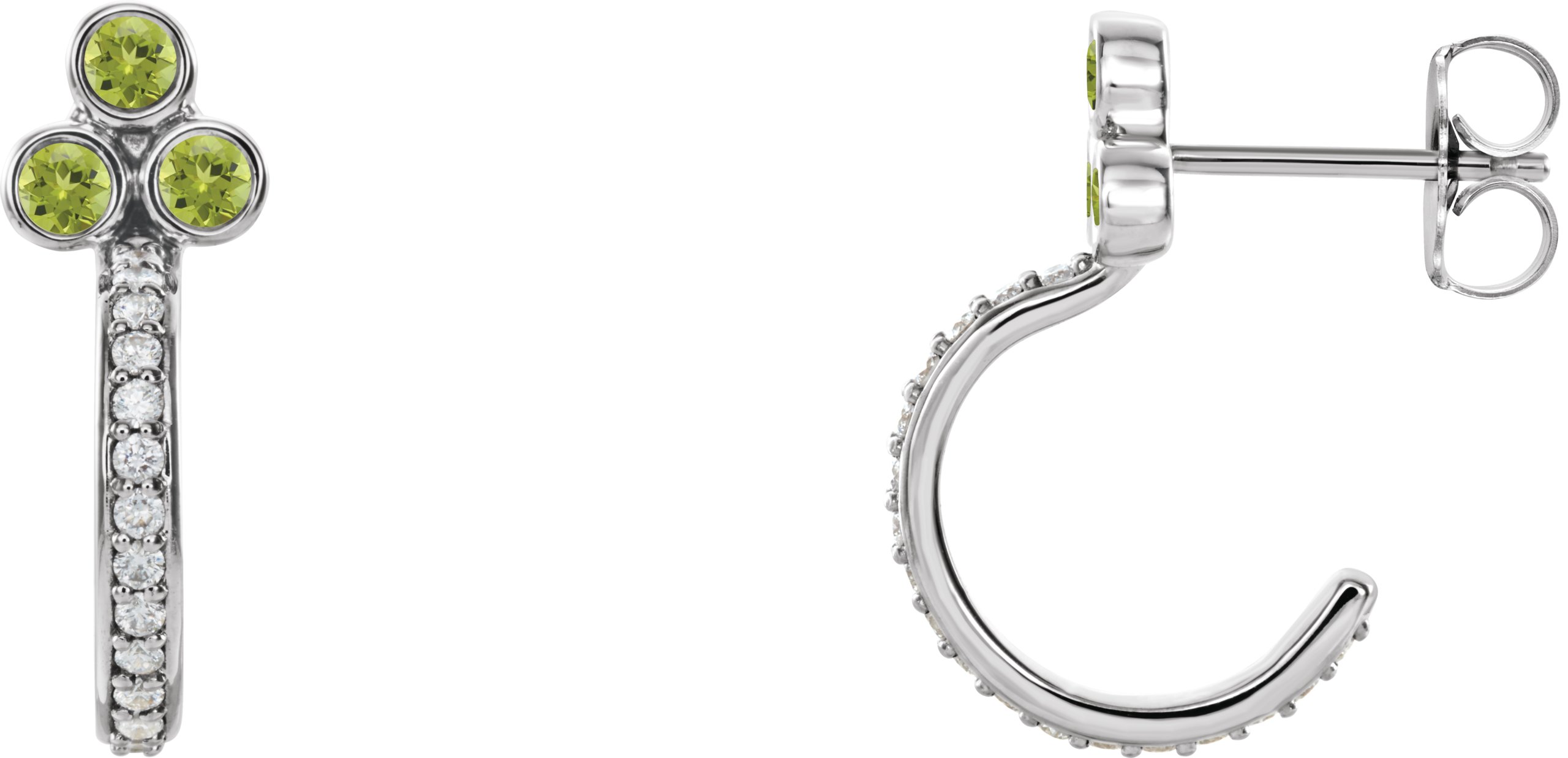 Description: Genuine Peridot And 1/4 Ctw Diamond J-Hoop Earrings
