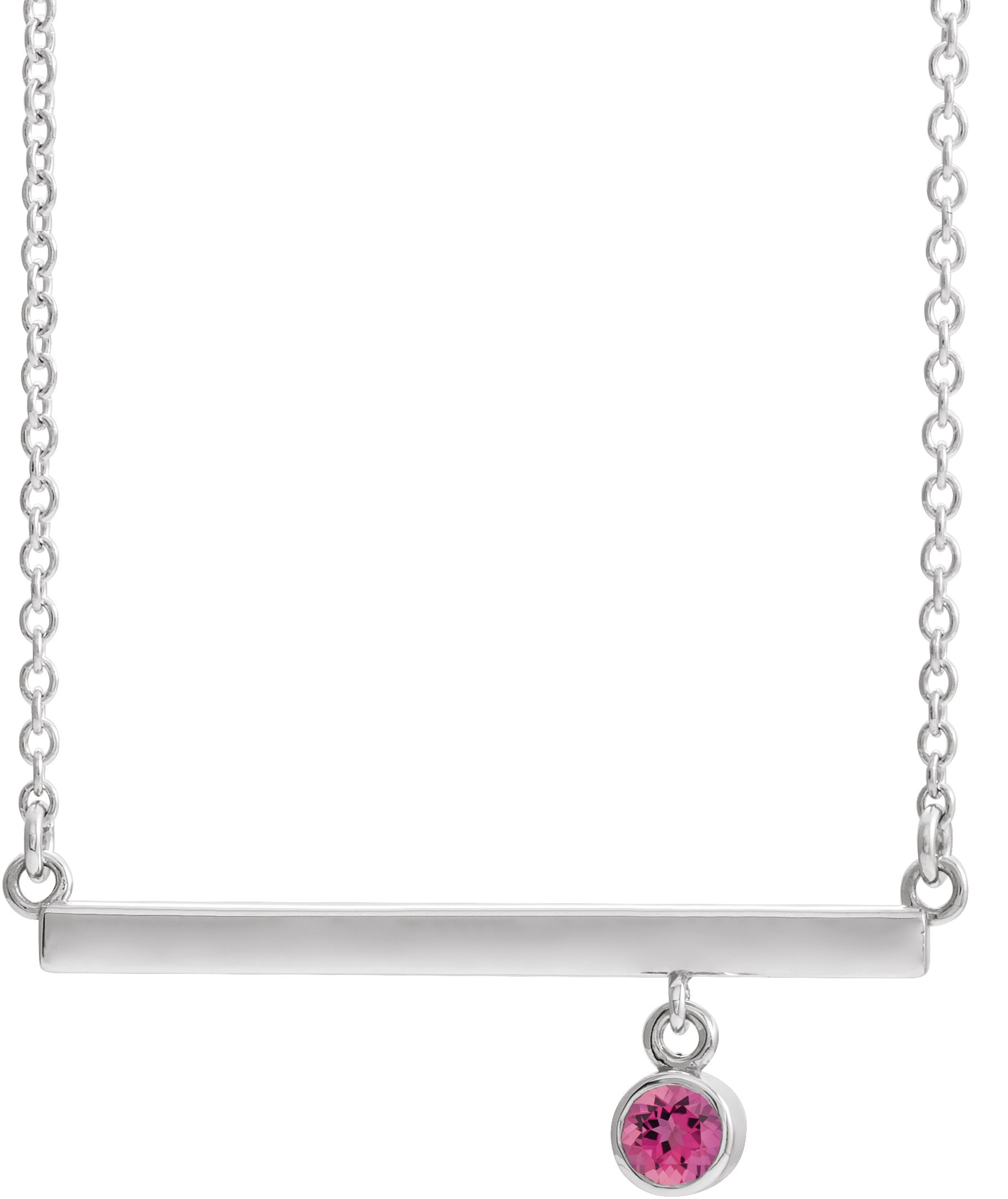 Platinum Pink Tourmaline Bezel Set 18 inch Bar Necklace