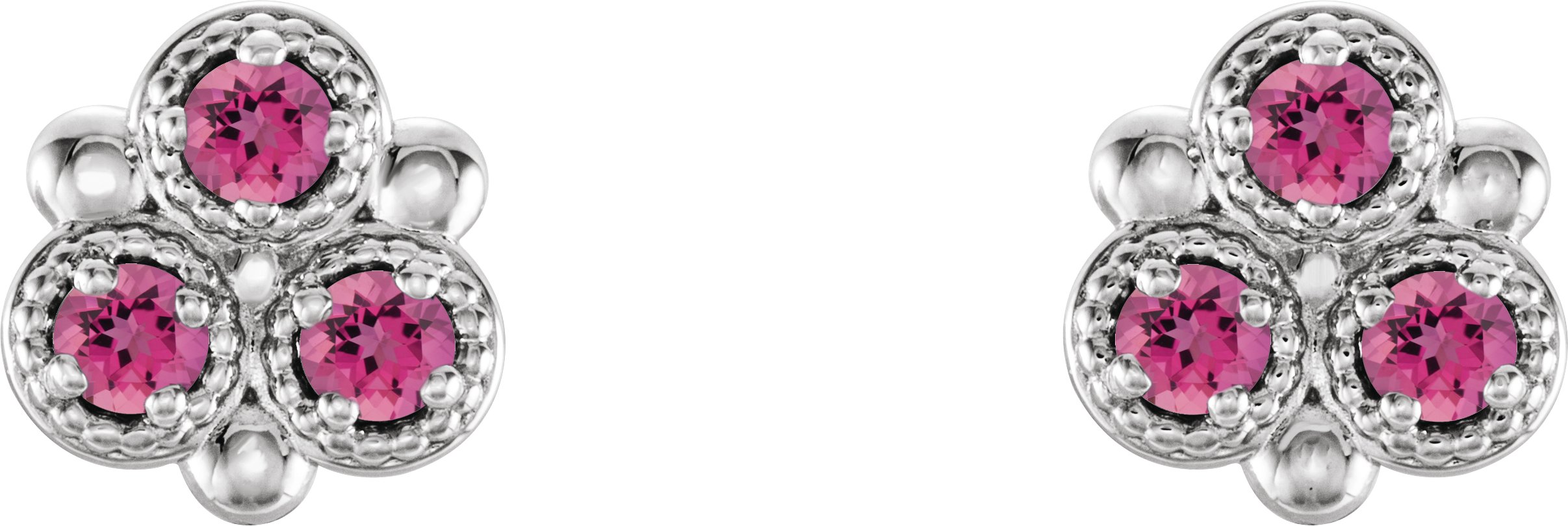 Platinum Pink Tourmaline Three Stone Earrings