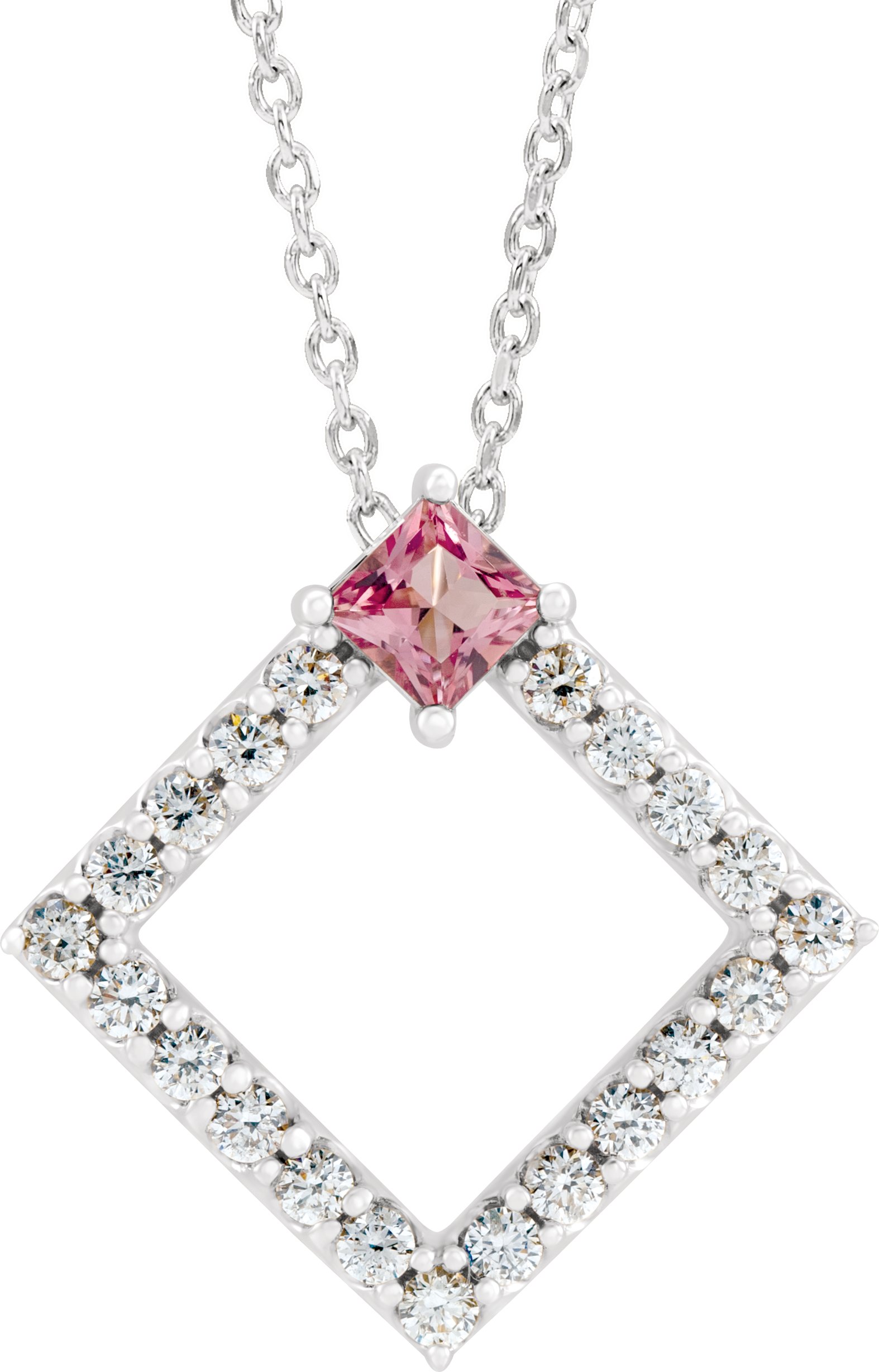 Platinum Pink Tourmaline and .375 CTW Diamond 16 18 inch Necklace