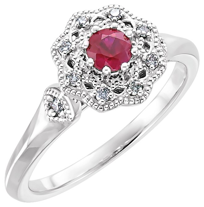 Platinum Ruby & 1/10 CTW Diamond Ring