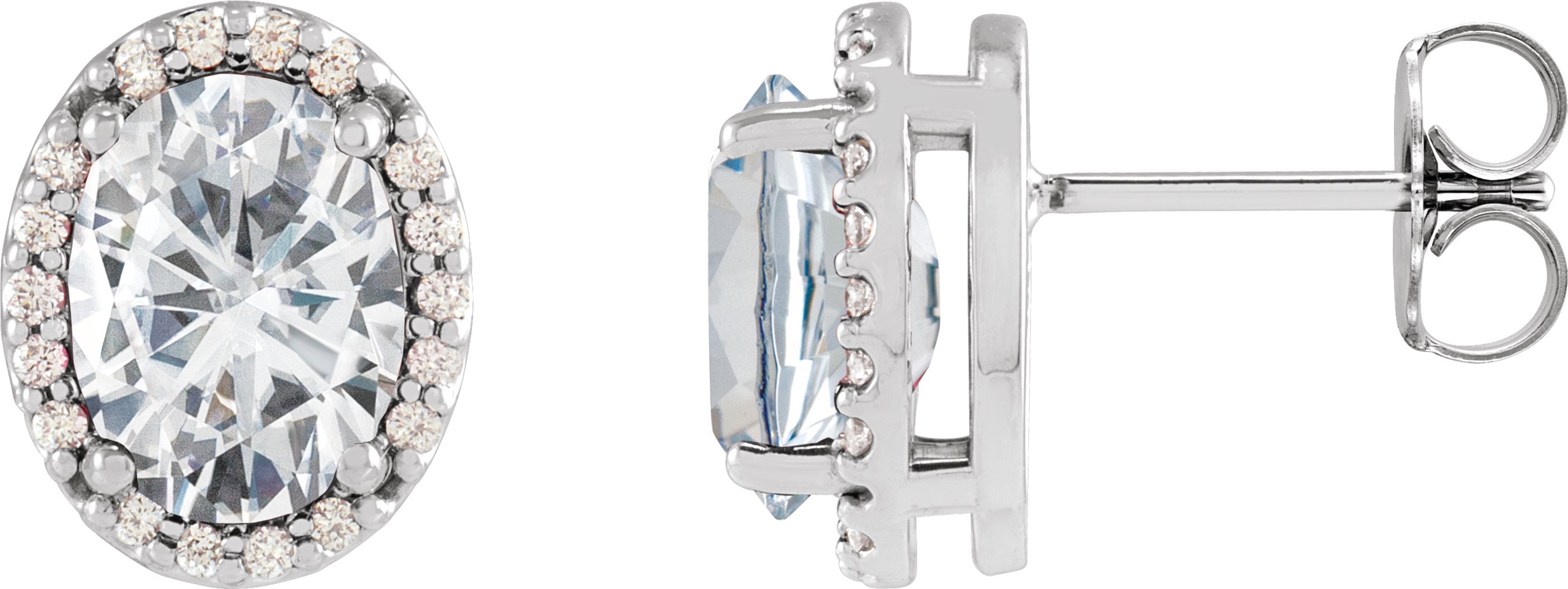 Description: Stuller Lab-Grown Moissanite And .06 CTW Natural Diamond Halo-Style Basket Earrings