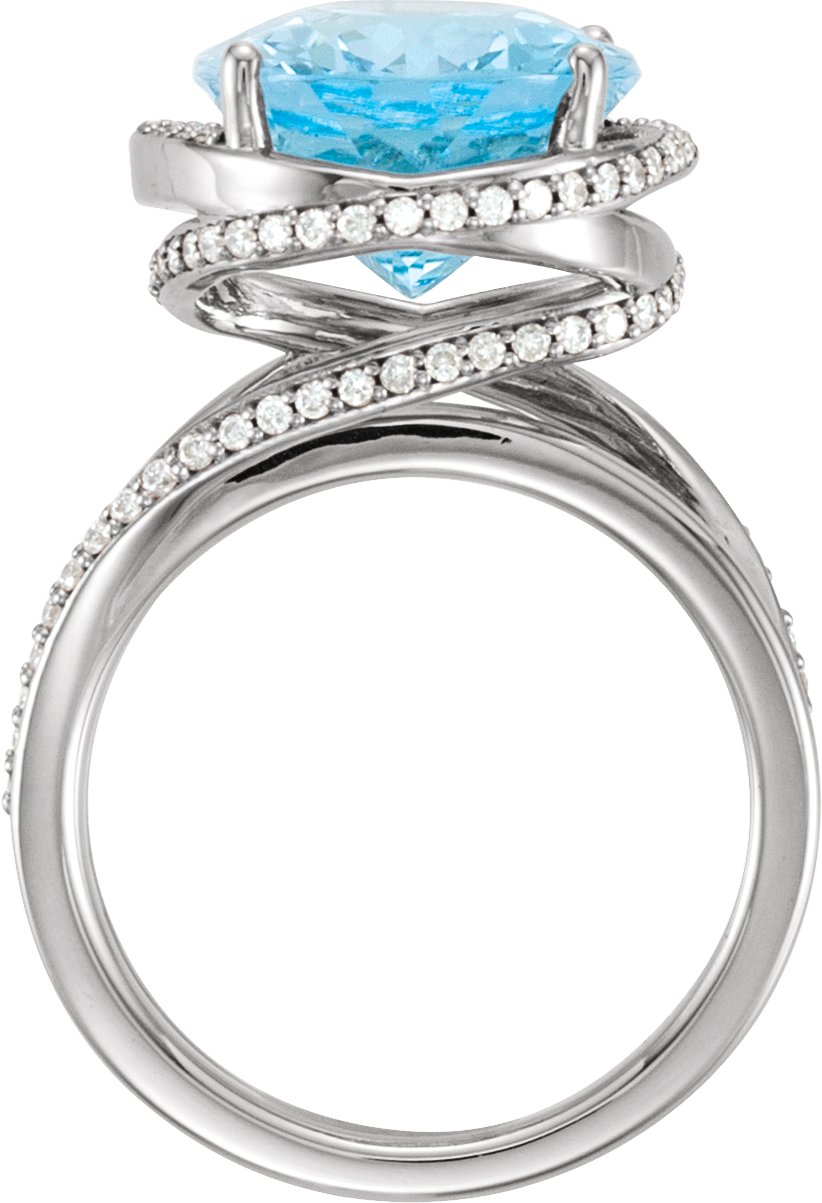 Platinum Swiss Blue Topaz and .50 CTW Diamond Spiral Ring