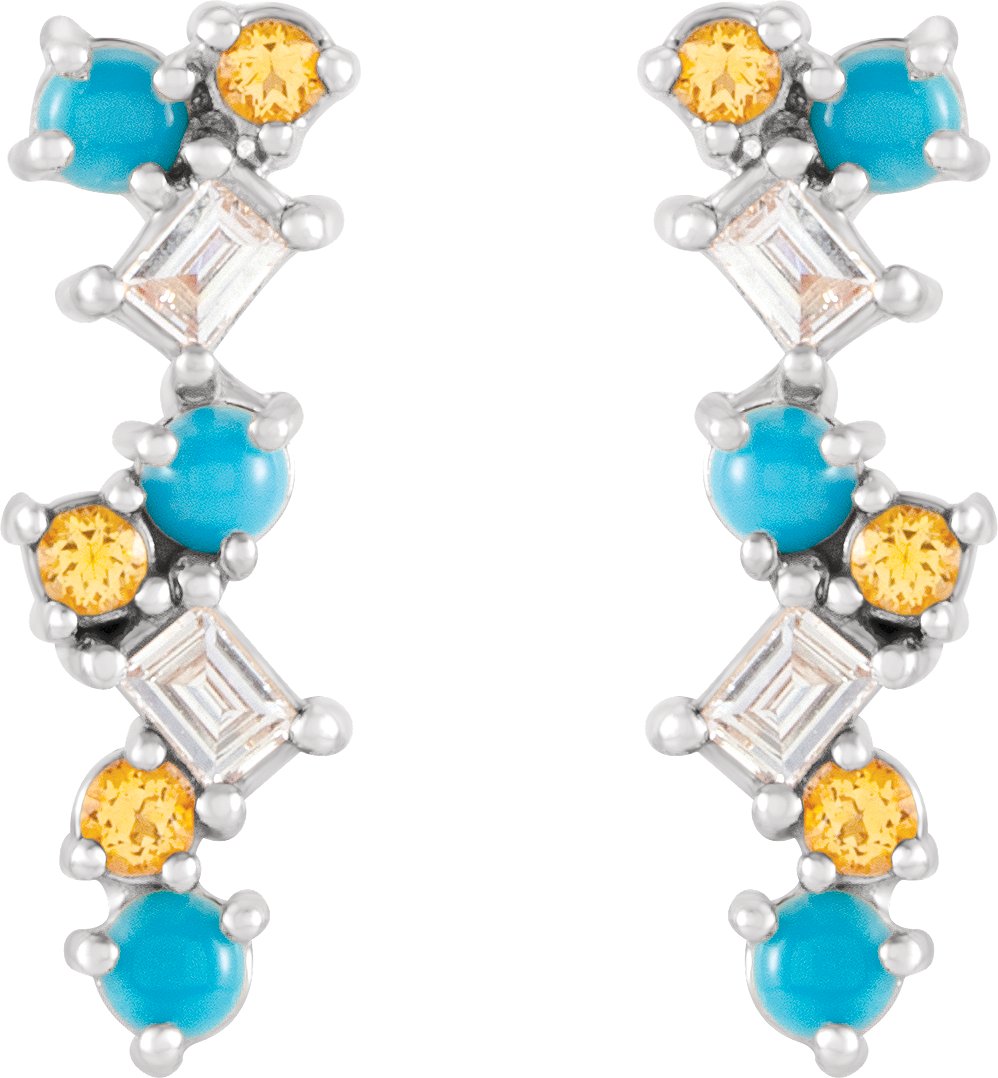 Platinum Turquoise, Honey Topaz & 1/10 CTW Diamond Scattered Bar Earrings