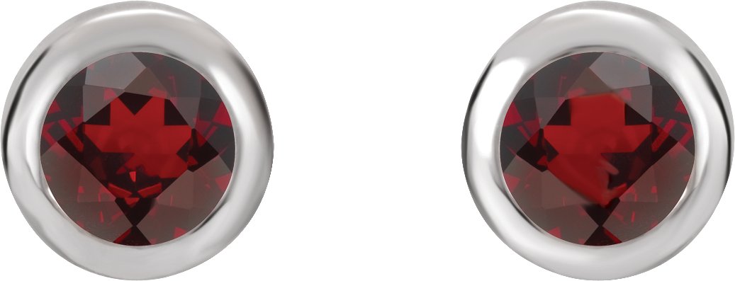 Rhodium Plated Sterling Silver 4 mm Round Imitation Mozambique Garnet Birthstone Earrings