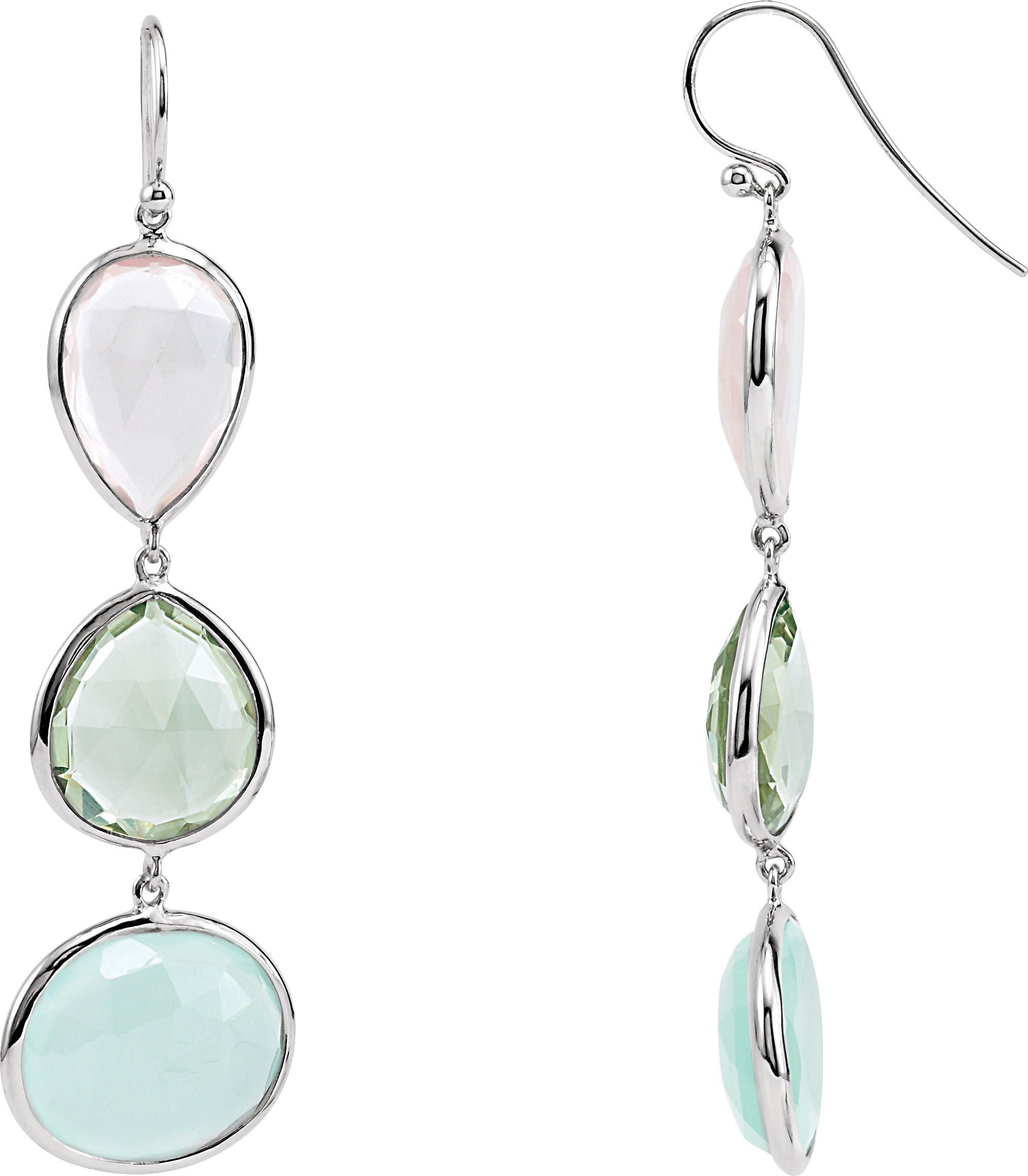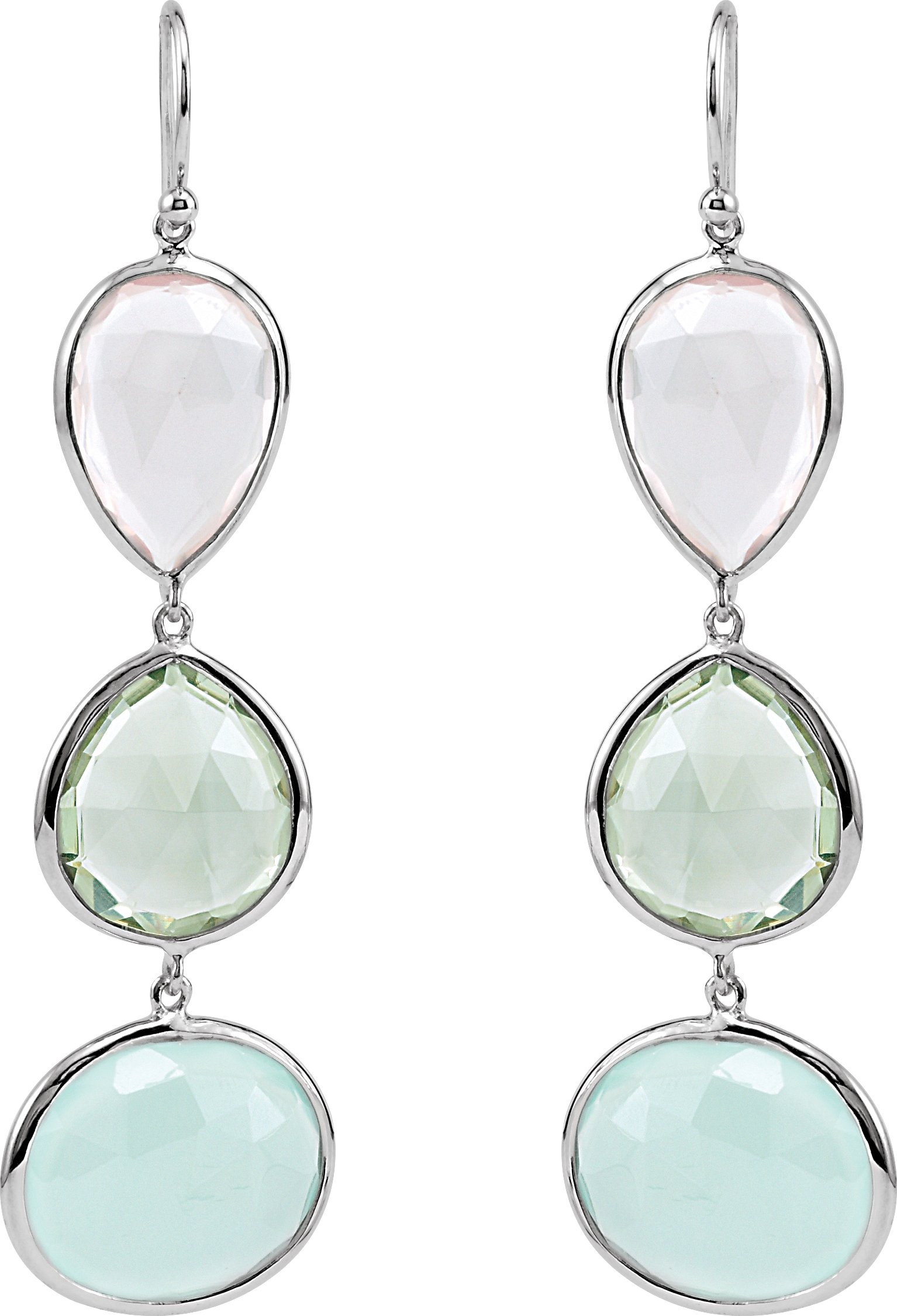 Rose Quartz, Green Quartz and Aqua Blue Chalcedony Earrings