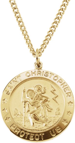 St. Christopher Medal Necklace | 14KY Gold Filled | 25 mm. Comes with 24-inch chain.