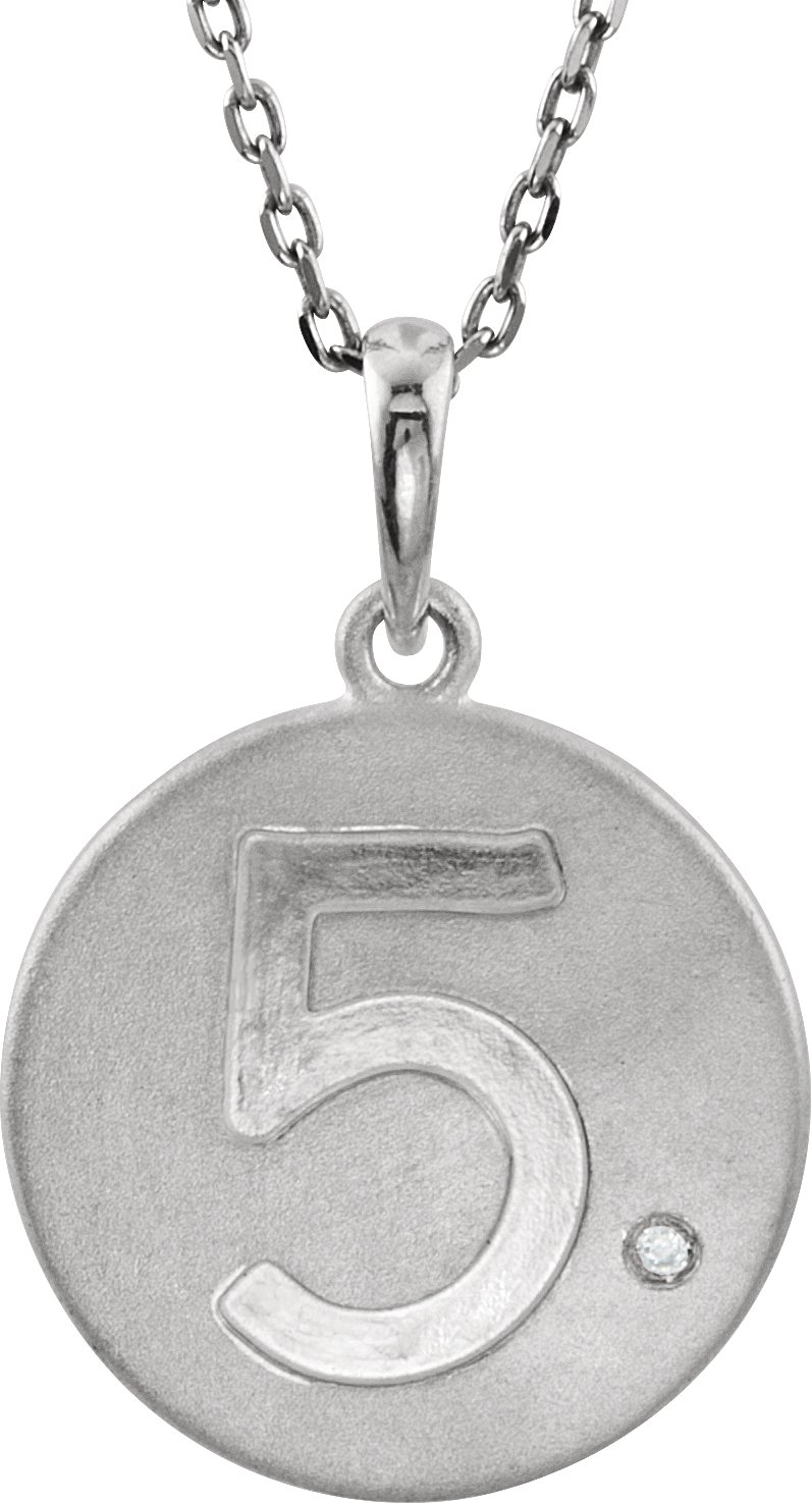 Sterling Silver .005 CT Diamond Numeral 5 Disc 18" Necklace Ref. 4333997